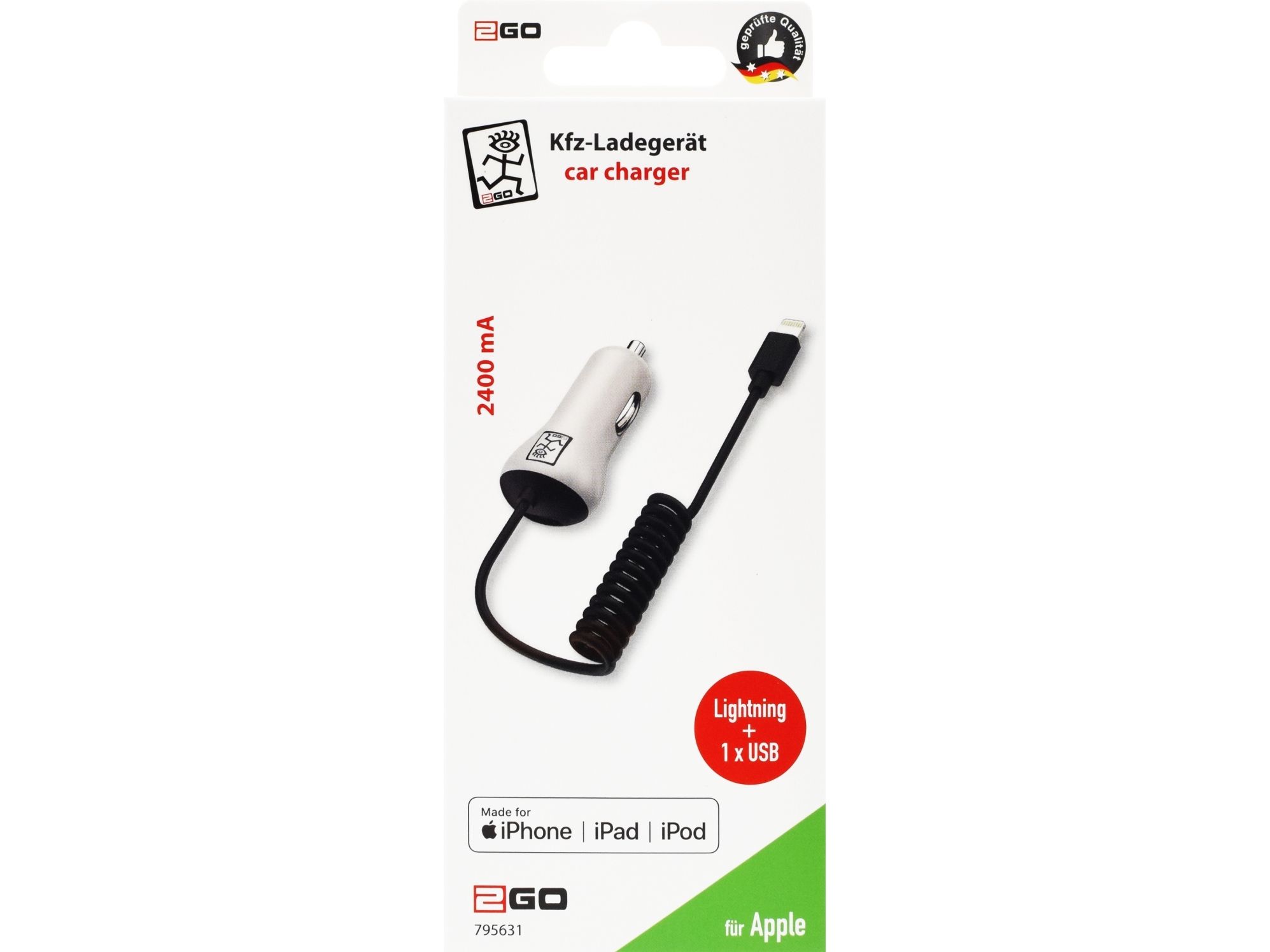 für alle iPhones und iPads mit Lightning-Buchse - Ausgangsleistung 2400mA