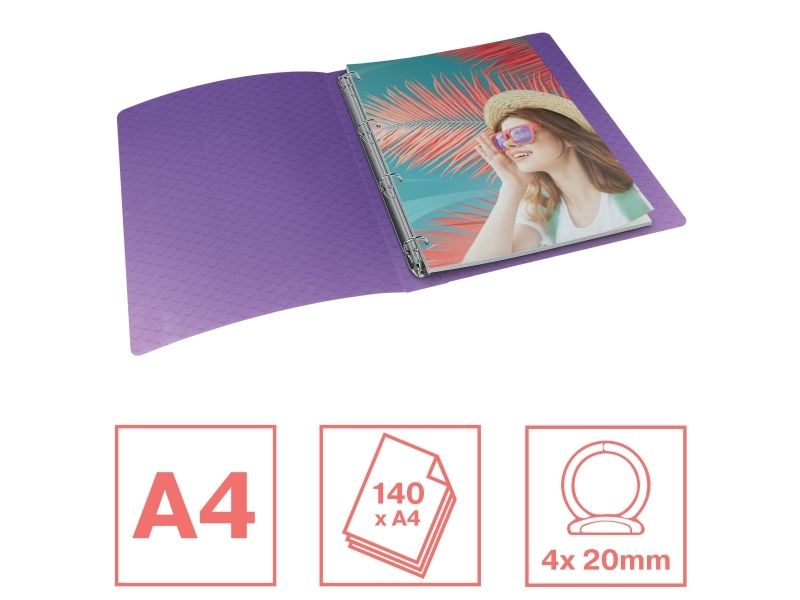 Tag naturens lyse farver til dig for at skabe en positiv arbejdsplads med Colour'Breeze-serien fra Esselte. Designet til at holde dig organiseret og motiveret, mens du studerer eller arbejder, og den moderne finish og de afslappende farver vil få dig til at drømme om dit næste eventyr. Esselte Colour'Breeze A4 ringordner med blødt omslag er en letvægts mappe til papirer, der kan bruges på farten eller til opbevaring på et skrivebord eller en hylde. Denne ringordner har en arkiveringsmekanisme med 4 runde ringe, der gør det nemt at vende sider eller tilføje og fjerne ark i dit dokument. Fremstillet af fleksibelt, polypropylen, som er let at gøre ren med en klud og med en rygetiket, der tydeligt identificerer indholdet. Fås i et udvalg af livlige farver og med det friske og moderne Colour'Breeze-design med præg. En frisk brise i dit liv! - Stilfuldt og holdbart A4 ringordner med 4 ringe, der er ideelt til at organisere alle dine A4-dokumenter - Standard 4 runde ringe mekanisme til hurtig og nem ar