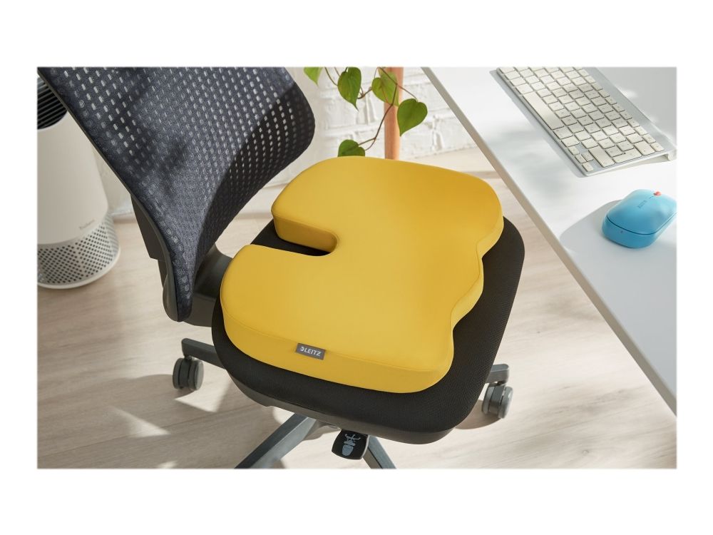 Leitz Ergo Cosy sædepude er perfekt til at skabe et behageligt og aktivt arbejdsområde med enhver stol. Designet til at fremme en sund kropsholdning, forbedre cirkulationen og lindre rygmarvstrykket. Puden vil medvirke til at reducere den ubehag, træthed og stivhed, der kan opstå ved længere siddende perioder eller iskias problemer. Ideel til brug hjemme, på kontoret eller endda i bilen for at maksimere komforten. Med sit minimalistiske design og matte finishfarver vil denne stilfulde ortopædiske sædehynde forbedre sundhed og velvære ved ubesværet at skabe det perfekte aktive arbejds set up. Kombiner med andre Leitz Ergo-produkter til et indbydende og fleksibelt arbejdsområde, der holder dig i bevægelse hele dagen. - Stilfuld og ergonomisk designet sædepude for at maksimere komforten på dit arbejdsområde på enhver stol - Fremmer en sund kropsholdning, forbedrer cirkulationen og lindrer rygsøjeltryk ved at minimere kontakten mellem halebenet og stolen - Hjælper med at reducere ubehag, træ