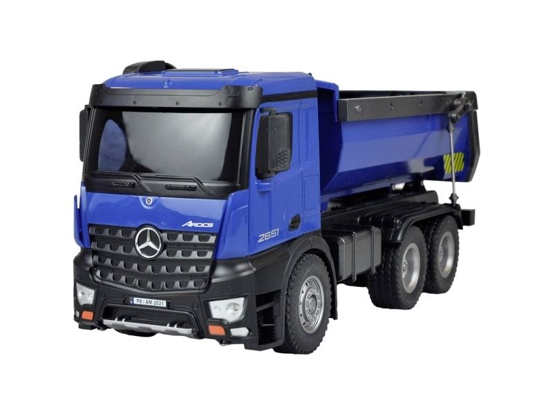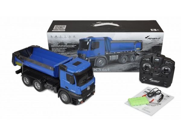 Arocs ist die Bezeichnung der berühmten LKW-Baureihe der Marke Mercedes-Benz der Daimler AG. Die Arocs Baustellenfahrzeuge wurden erstmalig 2013 vorgestellt und sind seitdem auf vielen Baustellen weltweit zu finden. Leistungsstärke, Zuverlässigkeit und Robustheit zeichnen sie aus. Bei diesem lizenziertem Modell lassen sich fast alle Funktionen wie beim großen Bruders ansteuern und dadurch die Herzen der Scaler Fans höherschlagen. Das Modell verfügt über einen 4WD Antrieb und ein gekapseltes Getriebe. Es ist daher vor Spritzwasser geschützt und somit auch geländetauglich. Der Aufbau und die Lackierung entsprechen bei diesem hochwertigen Modell dem Original, das macht dieses Modell in Ausführung und Darstellung besonders. Das Modell wird RTR (ready to run) ausgeliefert und der Lieferumfang beinhaltet alles, was für den Betrieb erforderlich ist. (außer die Batterien für den Sender).