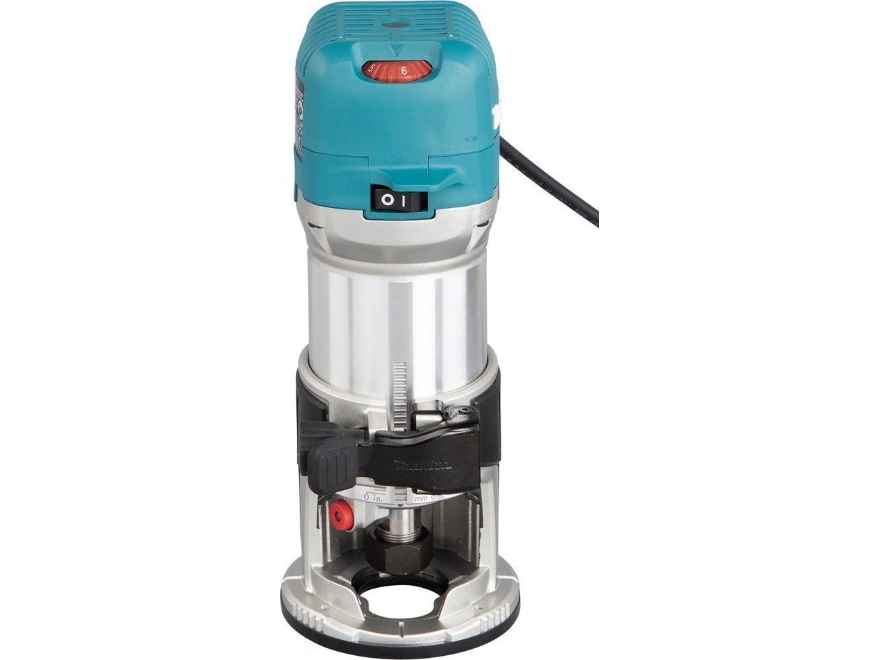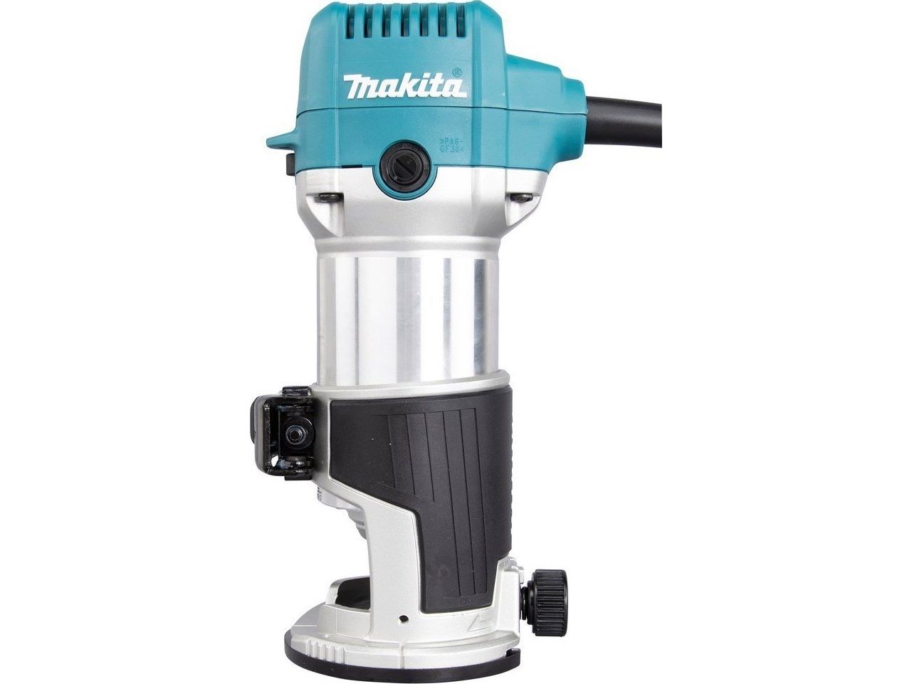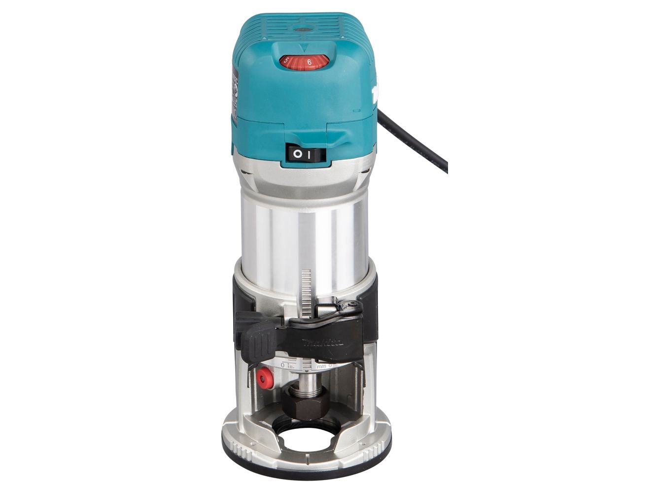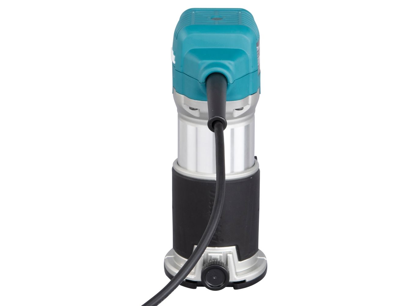 Versatile trimmer with comprehensive range of accessories Handy trimmer for carpentry or hobbies. With this router trimmer, you can cut various grooves or decorative edges in wood. Comes with 6 and 8 mm collets. A wide range of accessories for converting the trimmer to a router, for example.Makita RT0702C. Routers/trimmer base type: Plunge base, Product colour: Green, Grey. Idle speed (max): 34000 RPM, Collet capacity: 6, 8 (5/16"), Idle speed (min): 10000 RPM. Power source: AC, Input power: 710 W, AC input voltage: 230 V. Width: 89 mm, Depth: 89 mm, Height: 210 mm