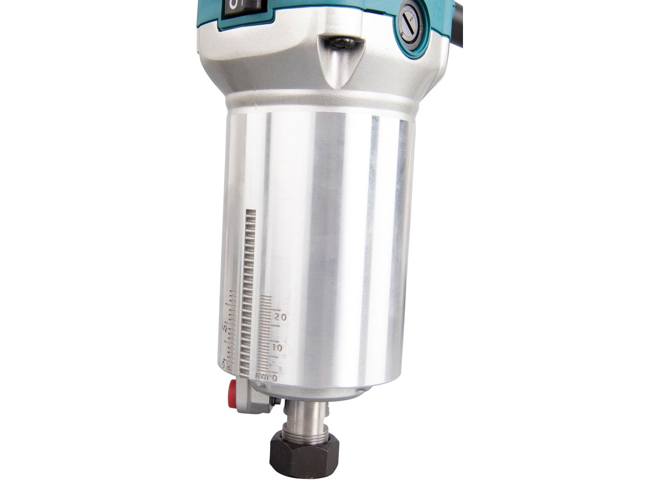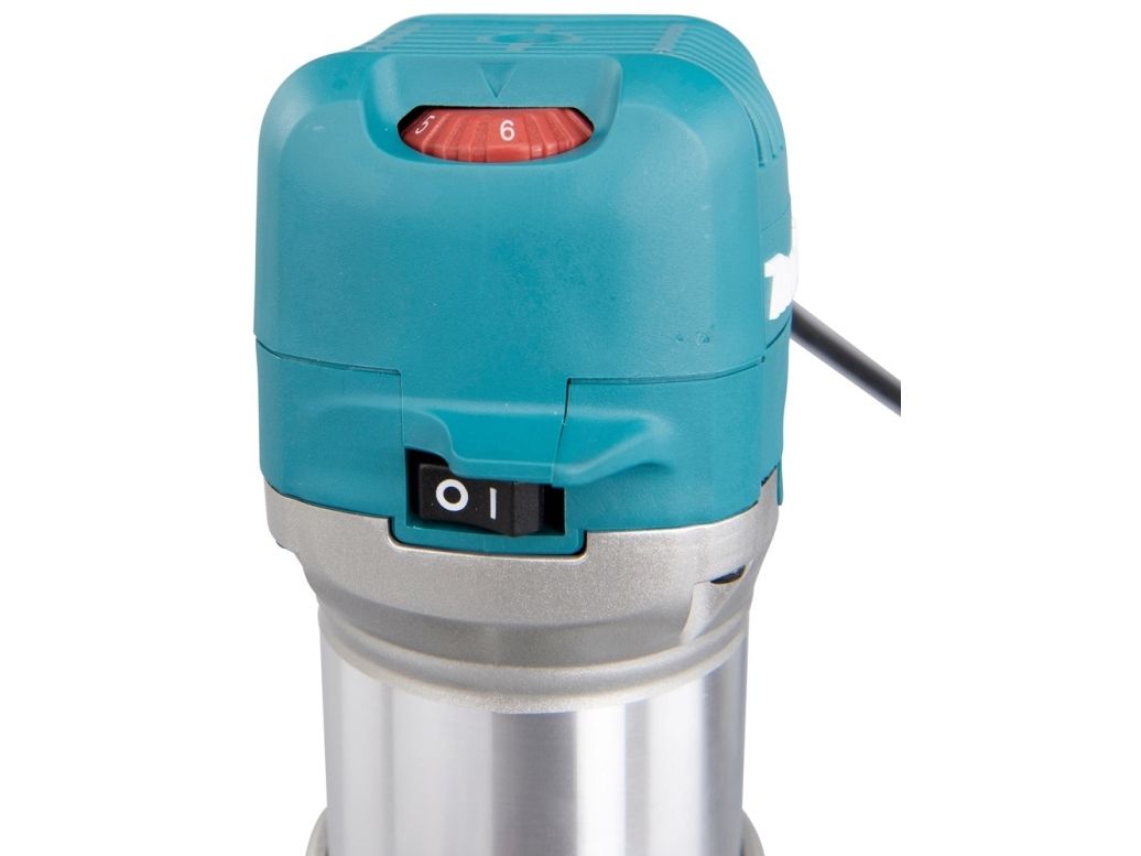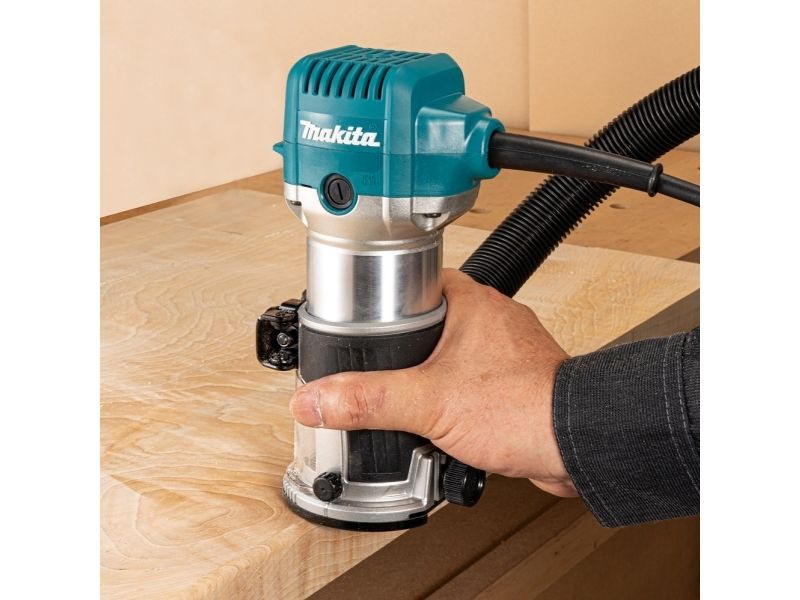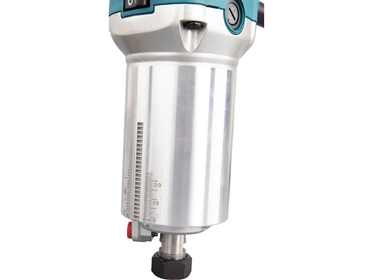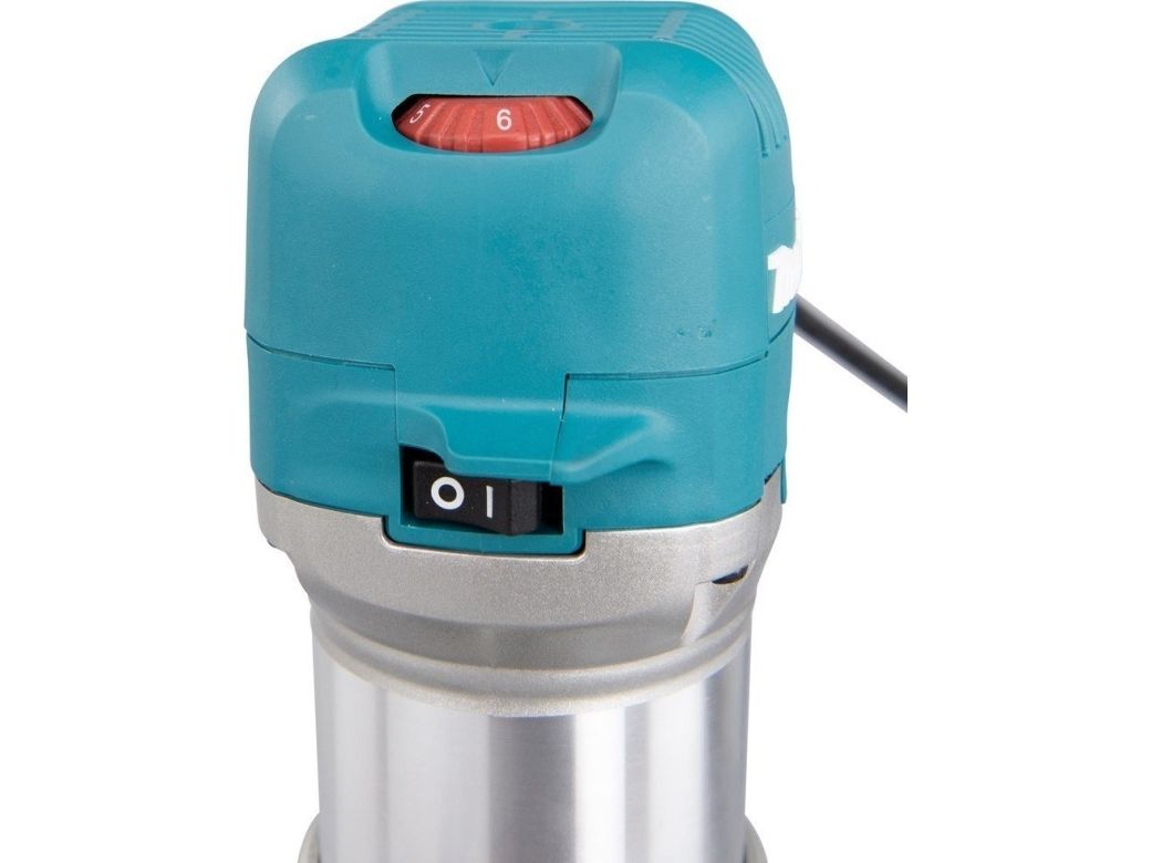 Versatile trimmer with comprehensive range of accessories Handy trimmer for carpentry or hobbies. With this router trimmer, you can cut various grooves or decorative edges in wood. Comes with 6 and 8 mm collets. A wide range of accessories for converting the trimmer to a router, for example.Makita RT0702C. Routers/trimmer base type: Plunge base, Product colour: Green, Grey. Idle speed (max): 34000 RPM, Collet capacity: 6, 8 (5/16"), Idle speed (min): 10000 RPM. Power source: AC, Input power: 710 W, AC input voltage: 230 V. Width: 89 mm, Depth: 89 mm, Height: 210 mm