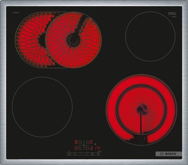 Bosch Serie 4 PKN645BB2E. Product colour: Black, Appliance placement: Built-in, Hob width size: 60 cm. Control type: Touch, Control position: Front, Clock type: Electronic. Connected load (electric): 7500 W, AC input voltage: 220 - 240 V, AC input frequency: 50 - 60 Hz. Apps supported: Home Connect. Bosch technologies (cooking): ReStart, TouchSelect