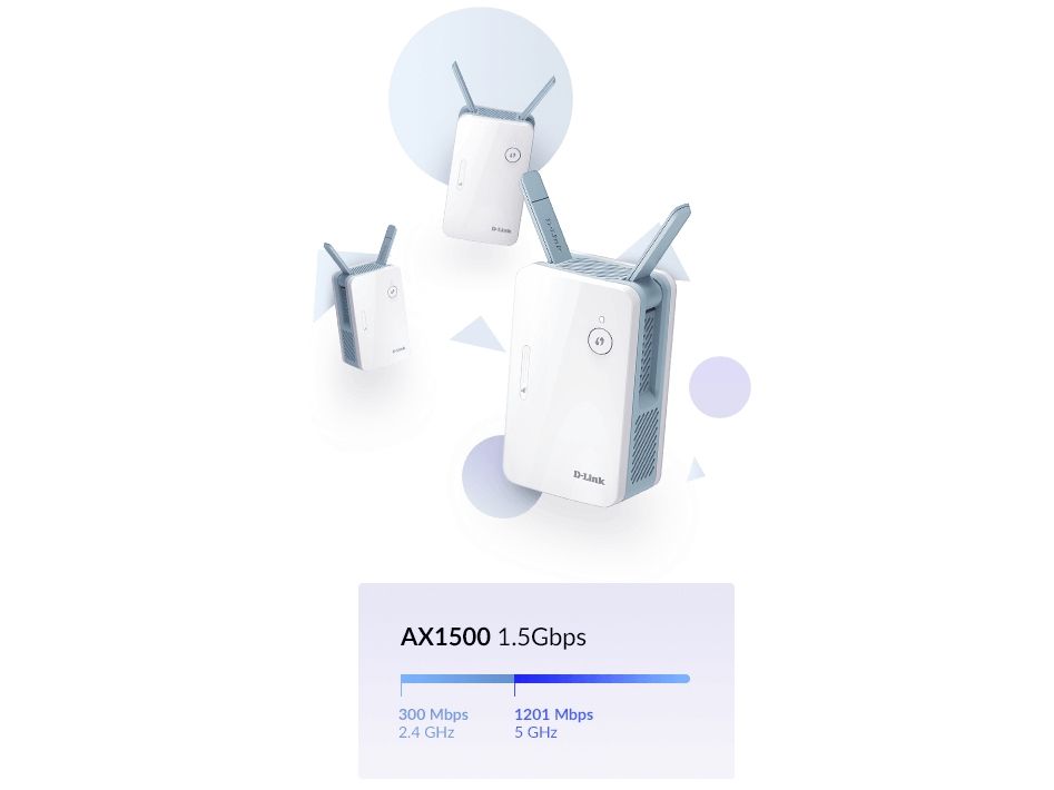 Expanding your Wi-Fi network is easier than ever. From single-storey flats to 4-storey houses with garden decks — simply add E15 Wi-Fi extenders to your existing network and enjoy an extended network that eliminates Wi-Fi dead zones in those hard-to-reach areas. You can also create a seamless mesh network by using the extender with D-Link’s EAGLE PRO AI and mesh products.