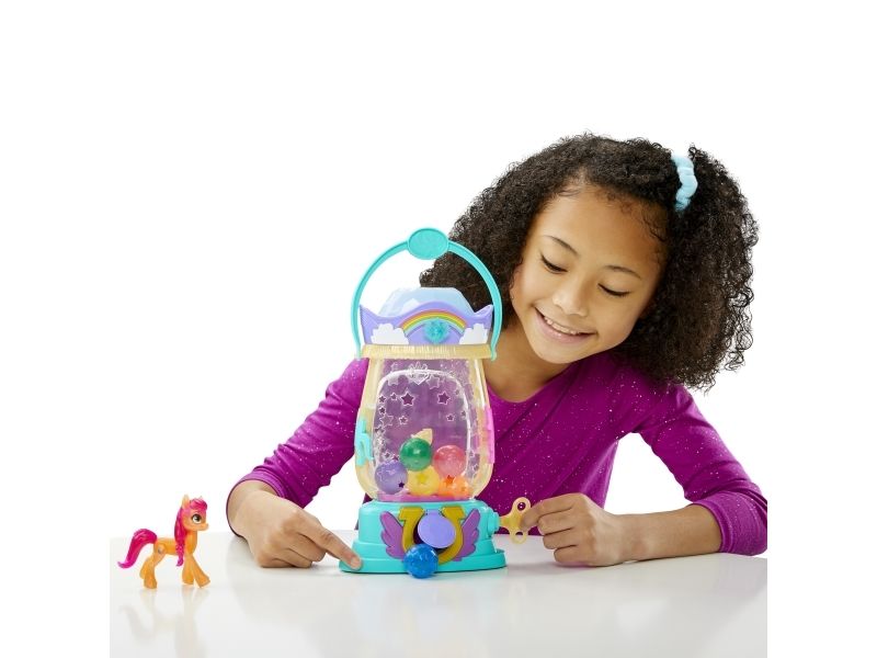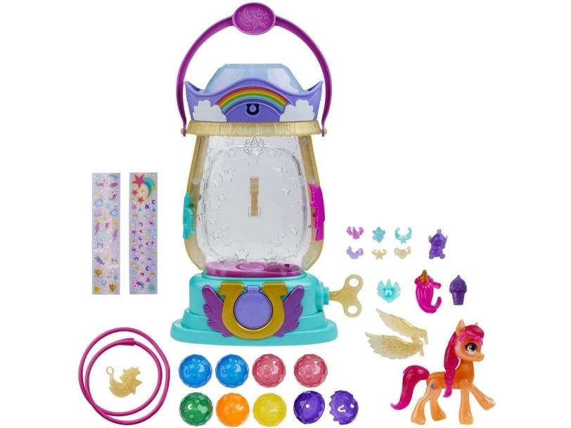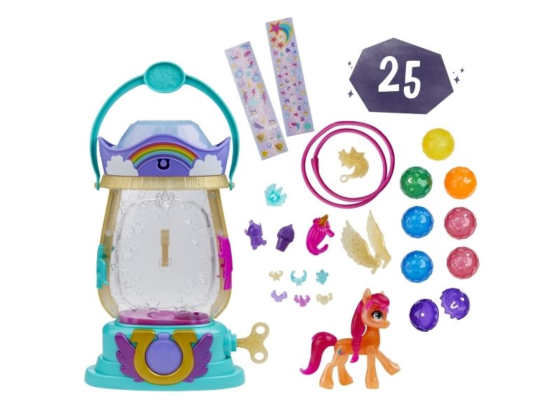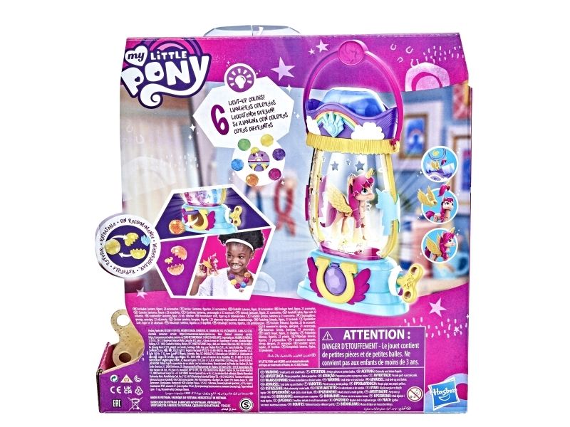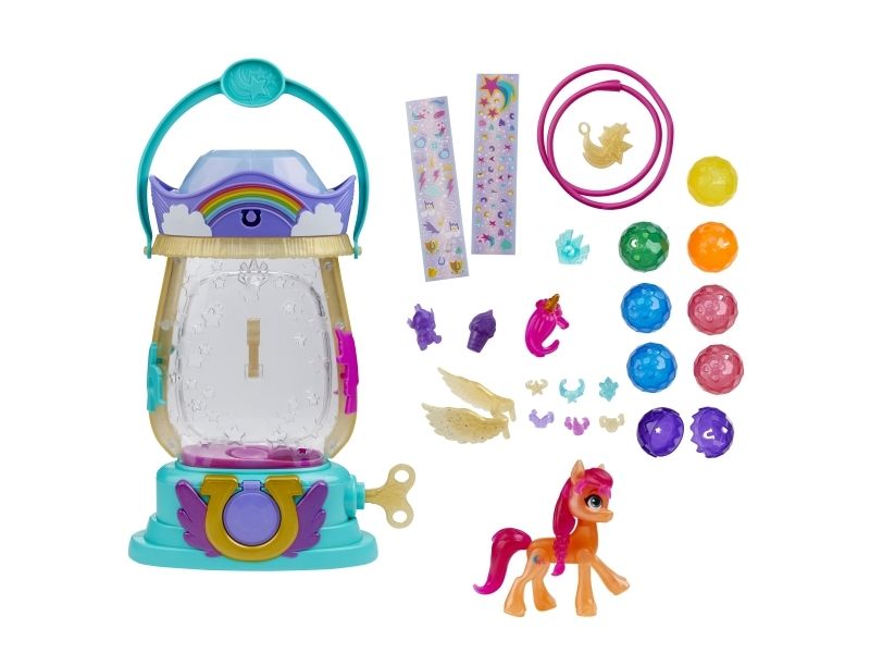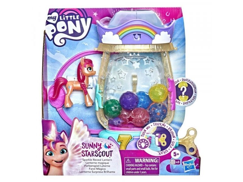 Here comes Sunny Starscout: an earth pony from Maretime Bay! Sunny is curious, adventurous and determined to make the world a better place. The play of colors lantern with Sunny Starscout has a bright surprise in store. Inspired by the movie My Little Pony - A New Generation! The Paintball Lantern includes a 7.5cm Sunny Starscout Pony figure with a falling star cutie mark on one flank inspired by her character. The figure is poseable and has sculpted pink hair that is braided into her signature braid. When the key is turned on the lantern, it lights up and small crystal containers appear. A surprise accessory is hidden in each small container and on top of the lantern! If the crystal parts are placed in the lantern over the light, the light color changes (6 different colors in total)! Younger and older fans can create exciting adventures with My Little Pony Movie toys. They make a great birthday or Christmas gift for kids aged 5+!
