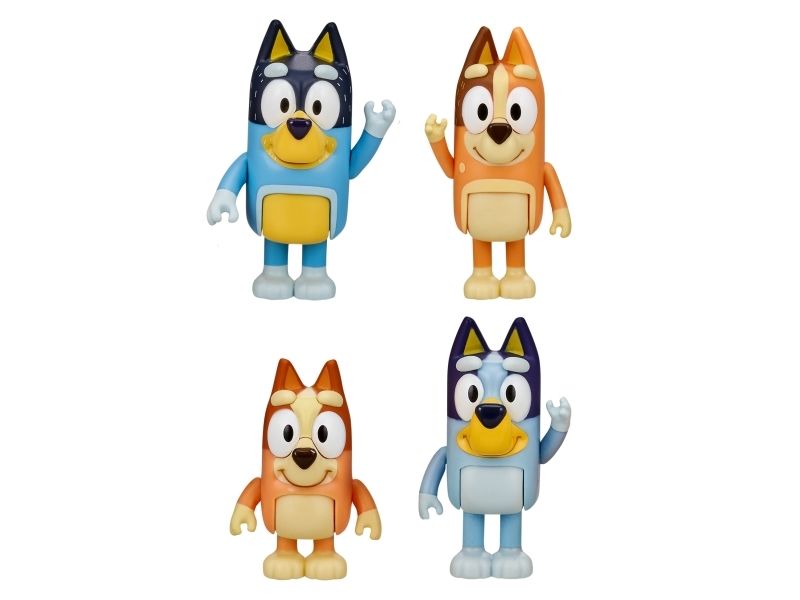 4 pcs. Figures with the Bluey Family or Blueys friends. You can now get some of the lovable characters from Bluey and recreate some of the well-known TV episodes!