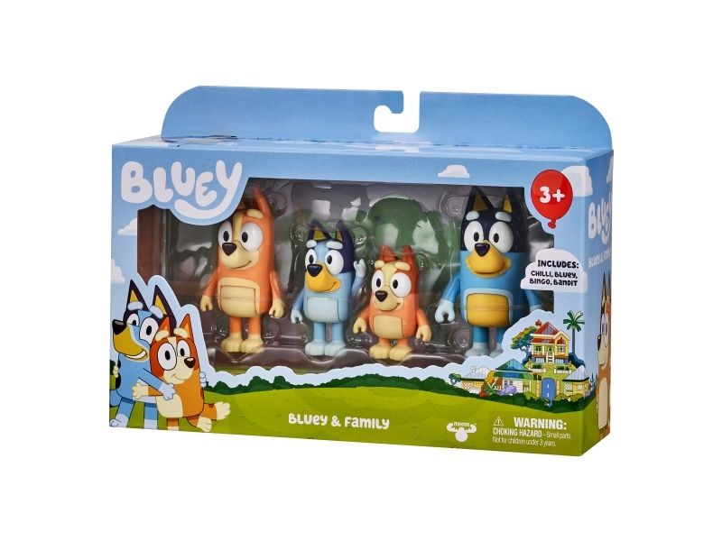 Contains: 4 x Bluey Characters 4 pcs. Figures with the Bluey Family . You can now get some of the lovable characters from Bluey and recreate some of the well-known TV episodes!