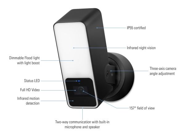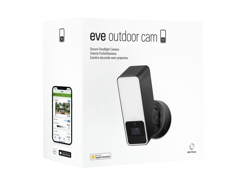 Eve 10ECA8101 Smarte Flutlichtkamera Outdoor (HomeKit), schwarz-weiß