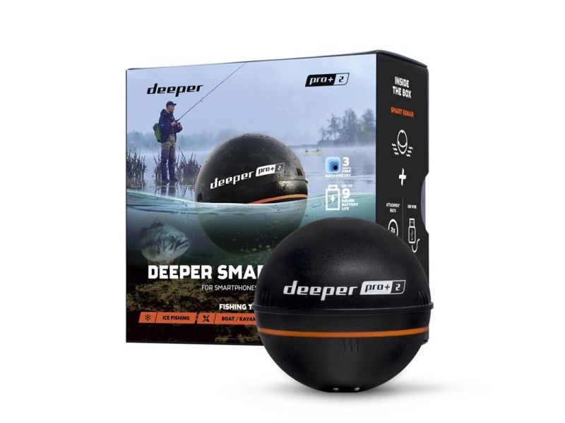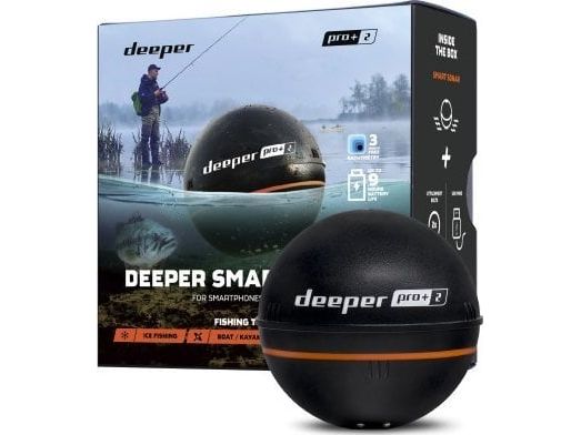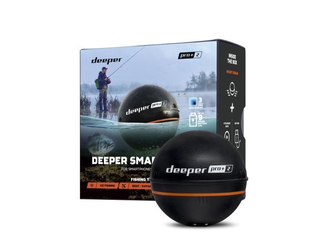 Deeper Sonar PRO+ 2Improved and better than ever now with 3 beam frequencies, more crisp and clear visuals, increased GPS performance, longer lasting battery up to 9 hours (depending on usage), and scanning depth up to 100 m.Fish like a pro3 Beam FrequenciesCover large expanses and locate fish holding spots faster with the wide angle beam, 47° (100 kHz). Use the mid angle beam, 20° (240kHz) to drill in on that hotspot you've located. Hone in on your target species with the very detailed, 7° (675kHz) narrow angle beam.Built-In GPSCreate lake maps from the boat or kayak and even the shore, dock or bank. Just cast out and reel in to start mapping a water body. Your maps are automatically saved to Fish Deeper™ and accessible on any device.Outstanding Depth and Casting RangeScans down to 100 m with accuracy and precision. It generates its own Wi-Fi signal (no cellular data needed) to connect to your smart device, so cast out to 100 m and feel confident there will be rock solid connectivity.Excellent Target SeparationWith a target separation of 1 cm (narrow beam) and 2.4 cm (wide and mid beams), you’ll be able to easily pinpoint target species and track even the tiniest lure when vertical jigging.One sonar for all seasons and fishing typesThe 3 beam frequencies give more accurate sonar readings. That's especially great for boat or kayak fishing and ice fishing.Kayak/SUP fishing - Installs on your kayak in seconds. No drilling, cables or batteries required. Ideal for SUP fishing, it fits comfortably into a hatch or tackle box. Troll and map or cast out to reach those hard to access areas.Boat fishing - Ideal for small boats. Cast out or troll from your pontoon, jon boat, inflatable boat or belly boat. Troll smoothly at a low speed of 3kph for accurate sonar readings or cast out to hard to reach places.Ice fishing - As an ice fishing flasher, Deeper PRO+ 2 makes hole hopping easier with no transducer or wires. Just drill and drop to see when your target species are about to strike.Shore fishing - Just cast out your sonar, reel it back in and get the fishing data you need. Locate the fish, find features to target, or map out your lake to get the complete picture.Deeper Smart Sonar PRO+ 2. Dimensions (WxDxH): 65 x 65 x 65 mm. Battery type: Li-Ion