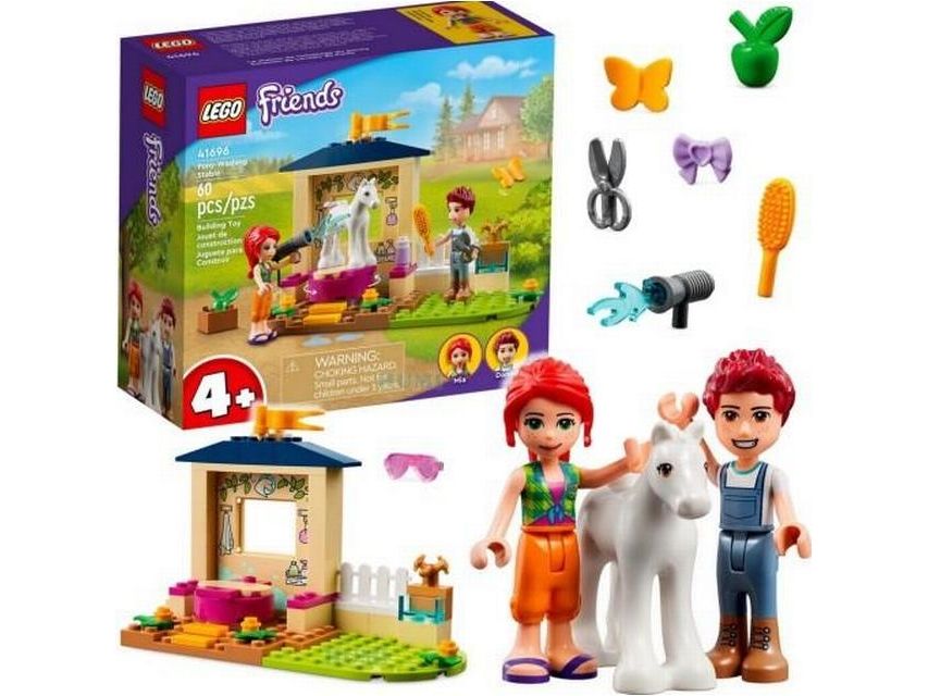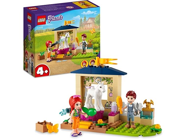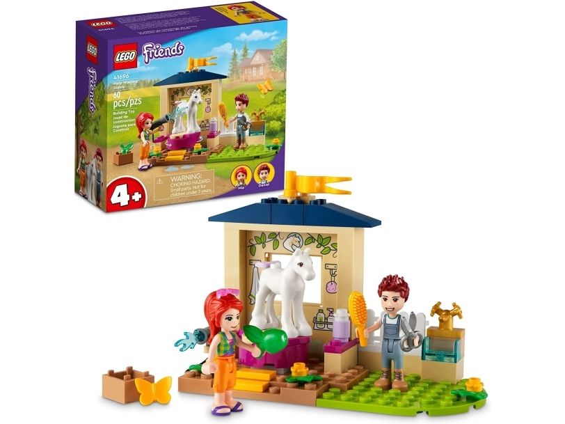 Rollenspiele mit Tieren: Dieses kreative Geschenk lässt dein Kind sotun, als würde es das LEGO® Friends Pony abduschen, die Mähne einklammern und das Fell striegeln und das Pferd dann mit einem Apfel belohnen