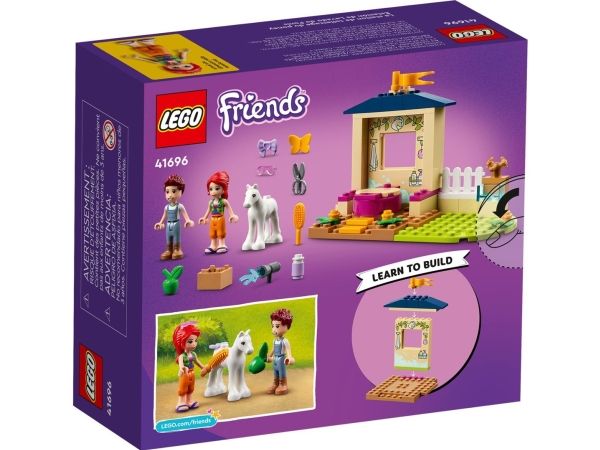 Mach kleinen Tierfreunden mit dem LEGO® Friends Spielset „Ponypflege“ (41696) eine riesige Freude. Dieses farbenfrohe Set bringt Kindern ab 4 Jahren das Bauen bei. Und sie können Mia und Daniel das Spielzeugpony umsorgen lassen.