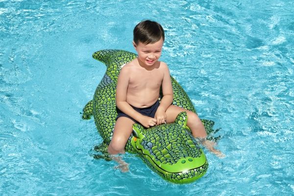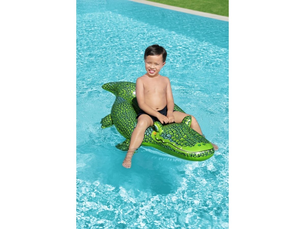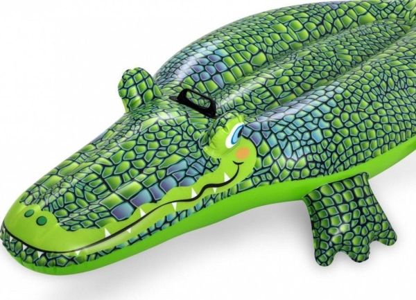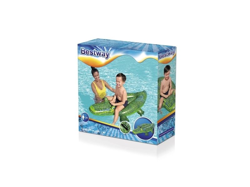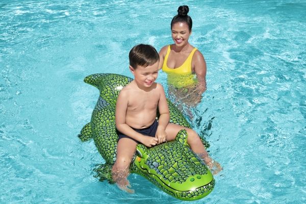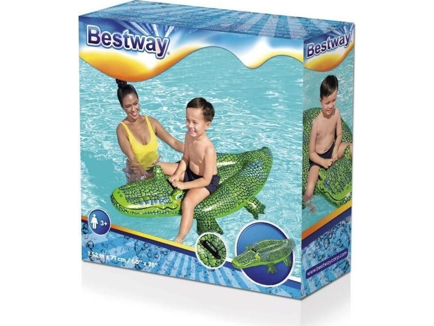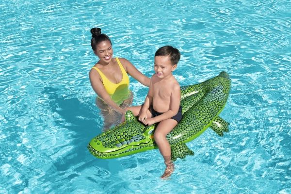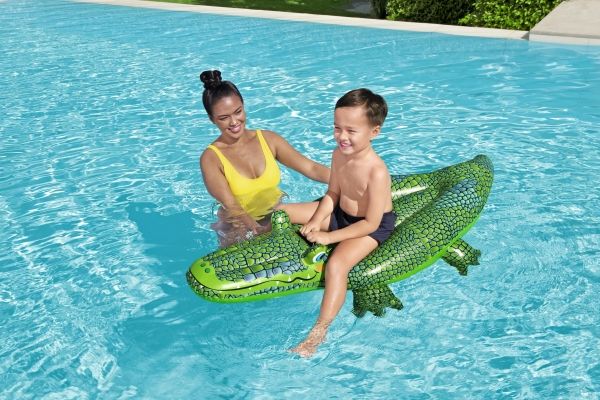 The Bestway Buddy Croc Kids Ride-On Pool Float is a kid-sized inflatable pool toy that measures more than 1.52 meters in length, making it the perfect size for a single rider. The colorful friendly design is certain to be a hit with children of all ages. Constructed from sturdy material, its strong enough to withstand any games or fun you can come up with. Kids will love using it to splash around in the water and will hold on with ease thanks to the heavy-duty handle. Pretend play has never had such a wild companion, Buddy Croc can take kids on an adventure down the Nile or into the jungle. Let their imagination run wild with this wily friendly crocodile float. And with its easy inflation, deflation and storage, the Buddy Croc Kids Ride-On will bring joy and adventure to your summer year after year.