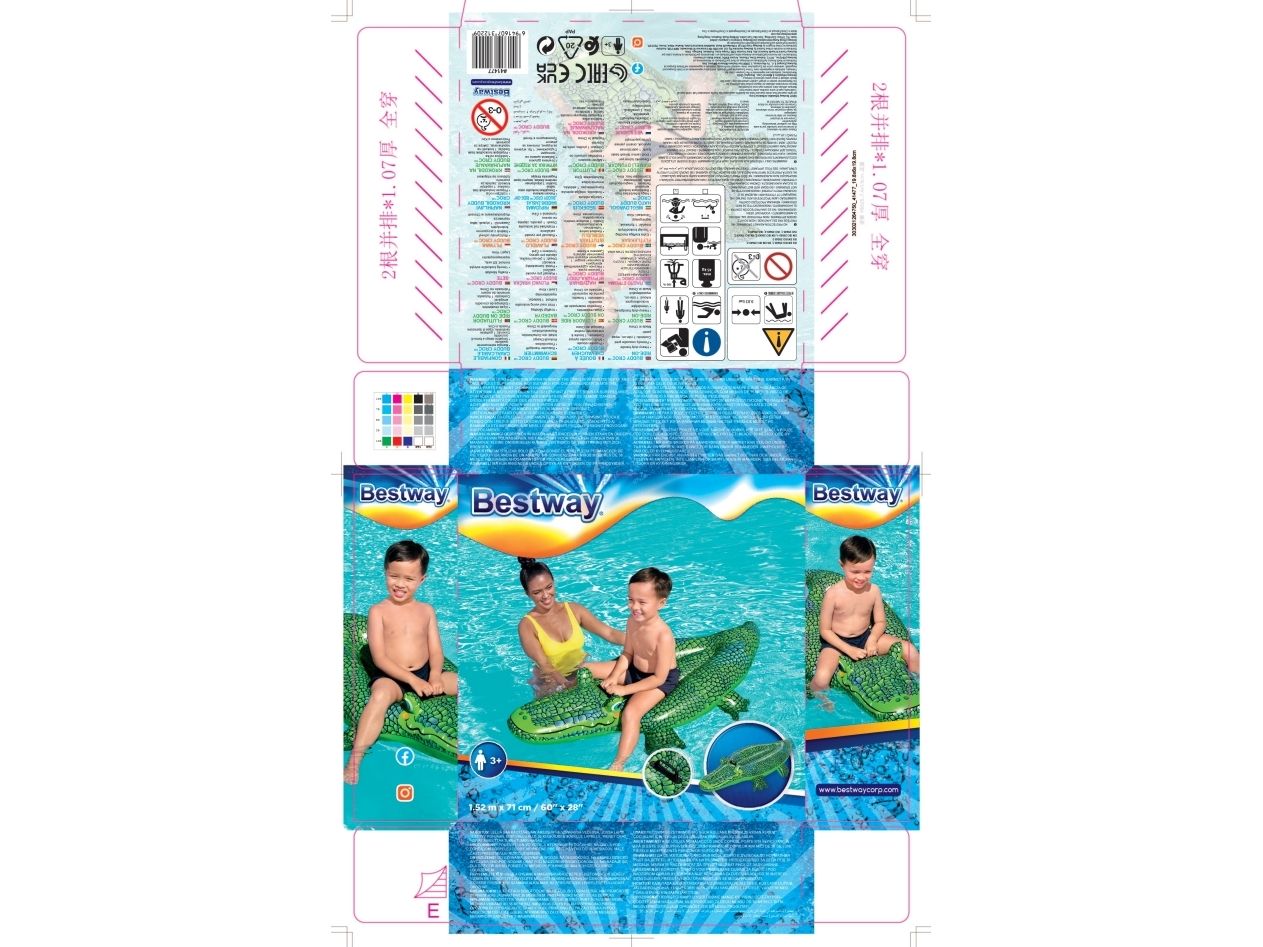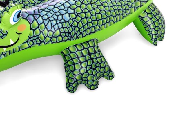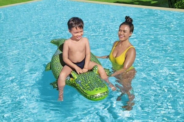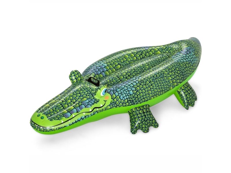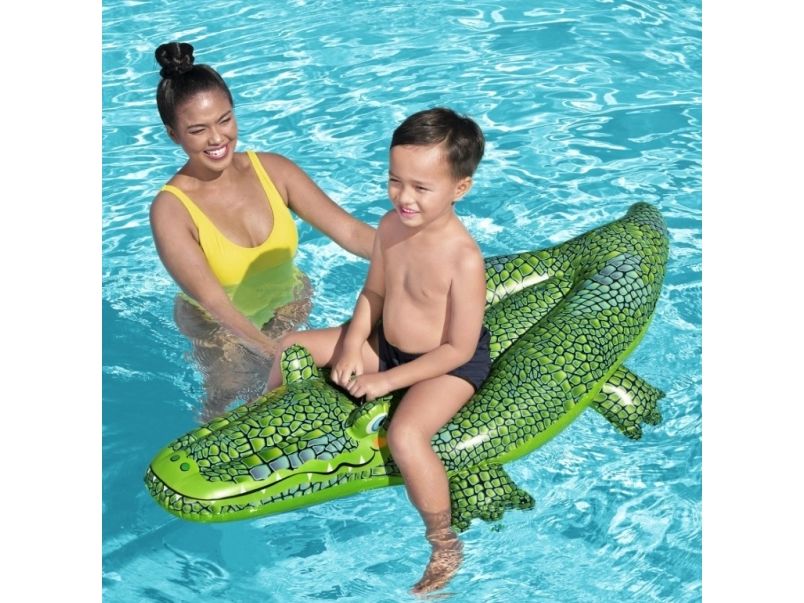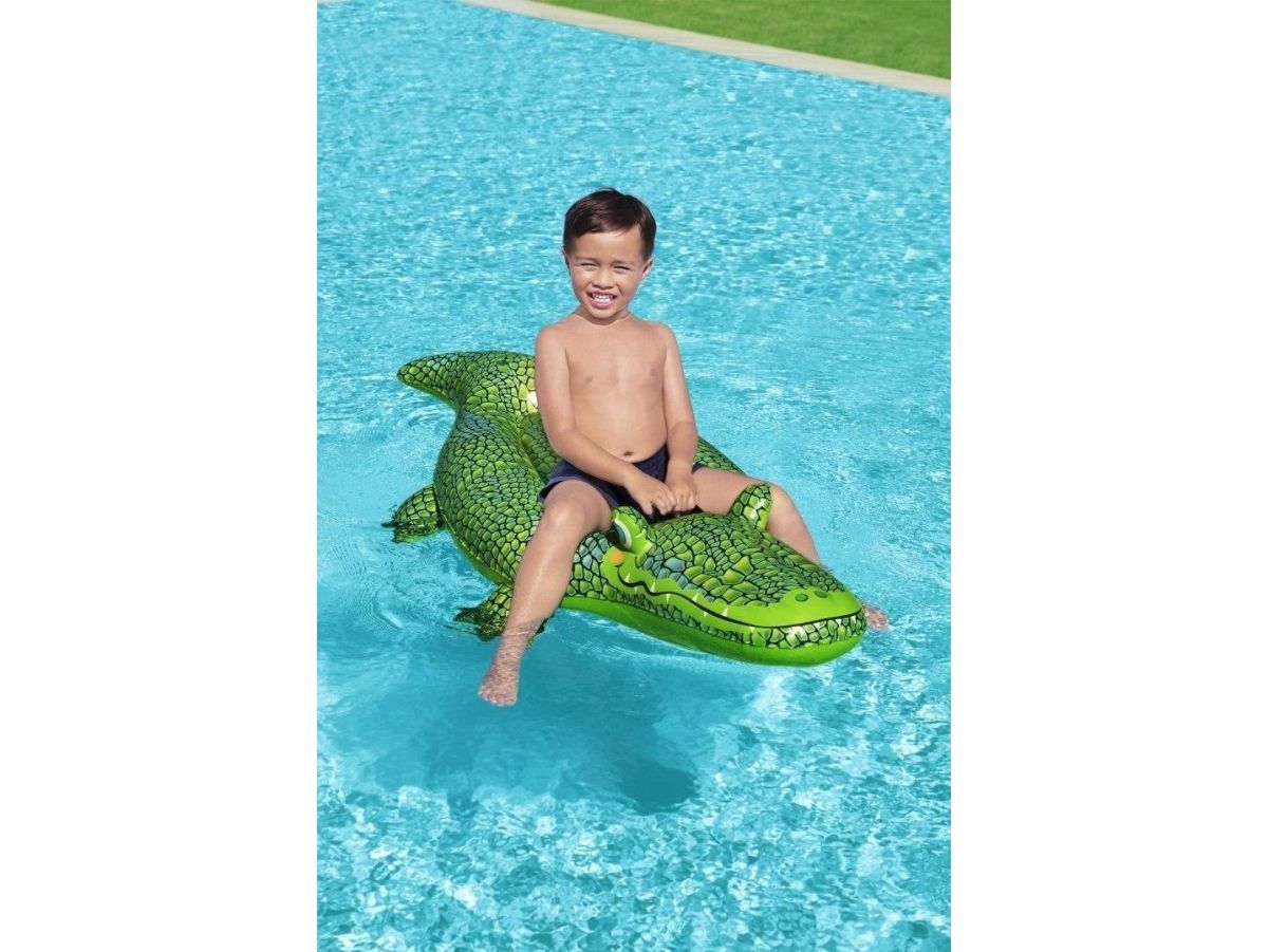 The Bestway Buddy Croc Kids Ride-On Pool Float is a kid-sized inflatable pool toy that measures more than 1.52 meters in length, making it the perfect size for a single rider. The colorful friendly design is certain to be a hit with children of all ages. Constructed from sturdy material, its strong enough to withstand any games or fun you can come up with. Kids will love using it to splash around in the water and will hold on with ease thanks to the heavy-duty handle. Pretend play has never had such a wild companion, Buddy Croc can take kids on an adventure down the Nile or into the jungle. Let their imagination run wild with this wily friendly crocodile float. And with its easy inflation, deflation and storage, the Buddy Croc Kids Ride-On will bring joy and adventure to your summer year after year.