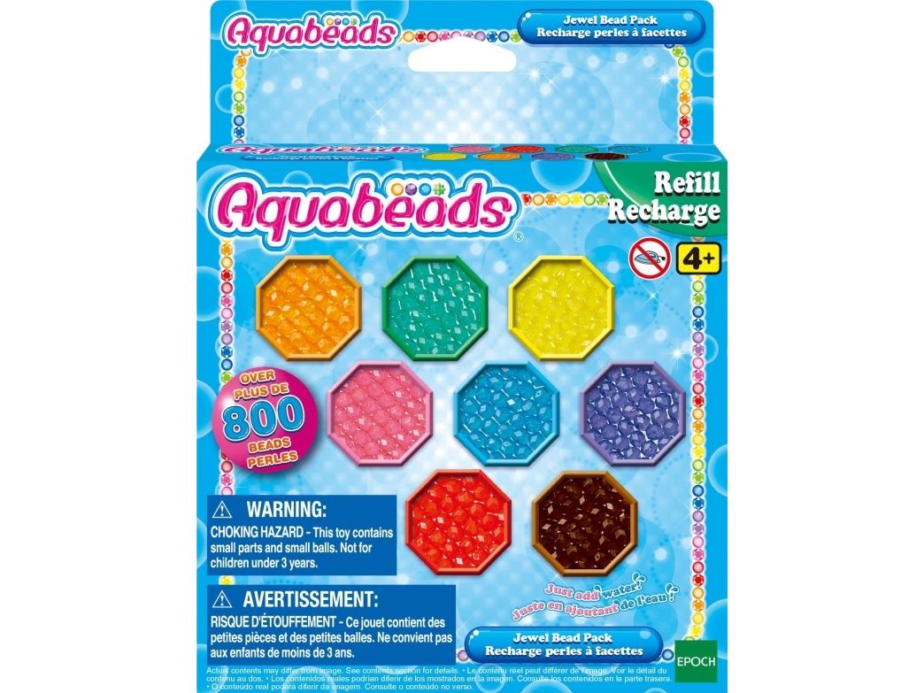 Box Contains 1 x Jewel Bead Pack Over 100 beads of each colour Refill set of solid beads with eight different colours Suitable for ages four years and up From Aquabeads Comes with jewel beads