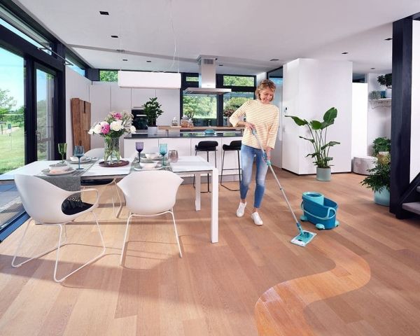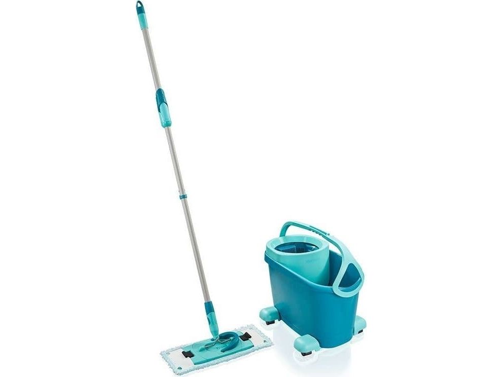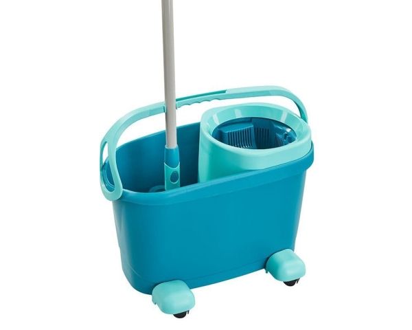 Since the rotation mechanism throws dirt directly out of the cover and ends up in the bucket, scratches are avoided. The wiper cover included in the Leifheit floor wiper set CLEAN TWIST M Ergo mobile super soft with a floor-friendly loop structure made of polyester emits only minimal moisture and is particularly suitable for sensitive floors such as parquet, laminate and real wood. The 360° cardan joint of the Leifheit wiper ensures particularly high cleaning comfort, as it allows wiping in snake lines and in hard-to-reach places. Since the base plate can be unlocked comfortably with the foot, no annoying bending over is necessary anymore. The handle from the CLEAN TWIST M Ergo mobile floor wiper set is adjustable in height and allows back-friendly work 110 - 140 cm. The new pocket-velcro combination of the wiper cover allows easy attachment and removal of the cover and at the same time secure hold during ejection. The trolley with the 360° wheels and the carrying handle on the bucket ensure comfortable transport of the wiping system of Leifheit. In addition, it is equipped with a handle holder and has a pouring snout to empty the water cleanly. The optimized ball bearing position of the CLEAN TWIST M Ergo mobile floor wiper set enables particularly quiet spinning.Leifheit 52121. Cleaning type: Wet, Mop head material: Microfiber, Product colour: Blue, Green