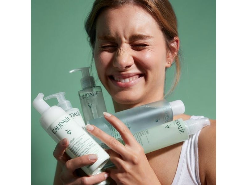 *Can be recycled only where facilities exist (except for the Instant Foaming Cleanser). No existing recyclable pumps: to be collected by Terracycle in our Boutiques. **Compared with the former line of Caudalie cleansers and make-up removers.