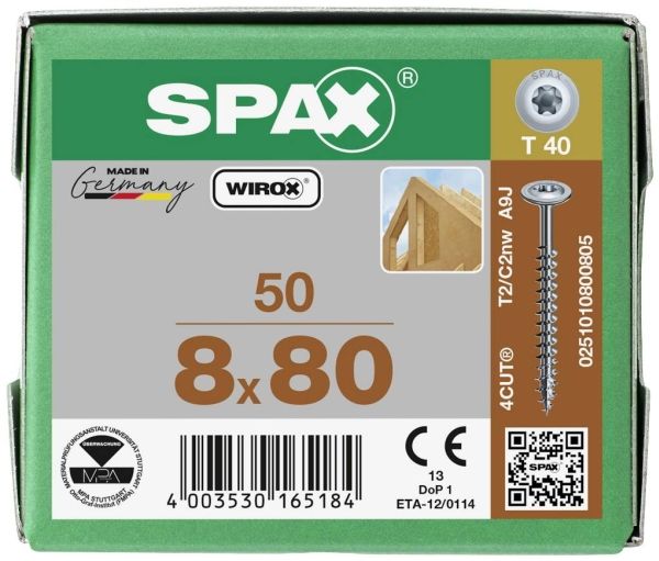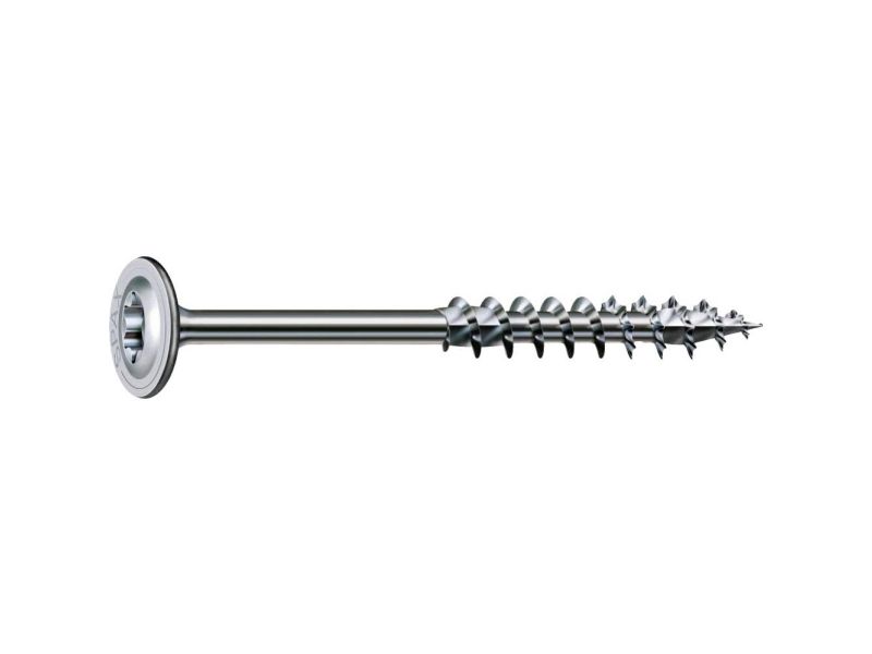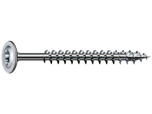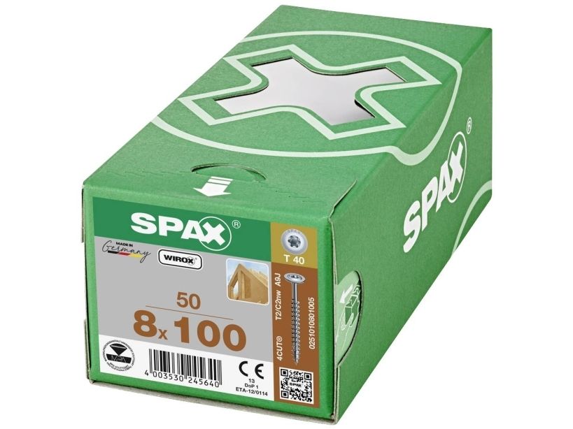Die Holzbauschrauben Tellerkopf aus dem Hause SPAX besitzen durch ihre Wirox Oberfläche einen 10-fach höheren Korrosionsschutz.