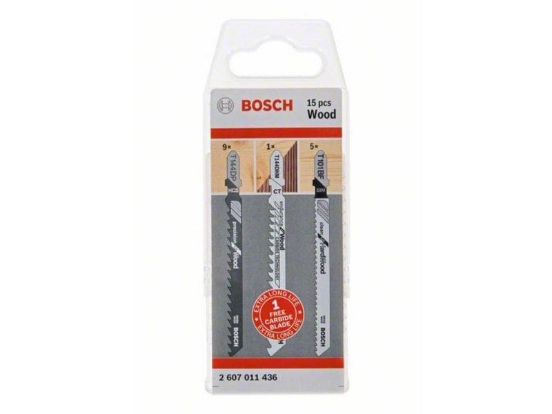 Das 15-teilige Stichsägeblätter-Set Wood von Bosch ist optimal für Holzarbeiten in Weichholz, Hartholz und Massivholz geeignet.