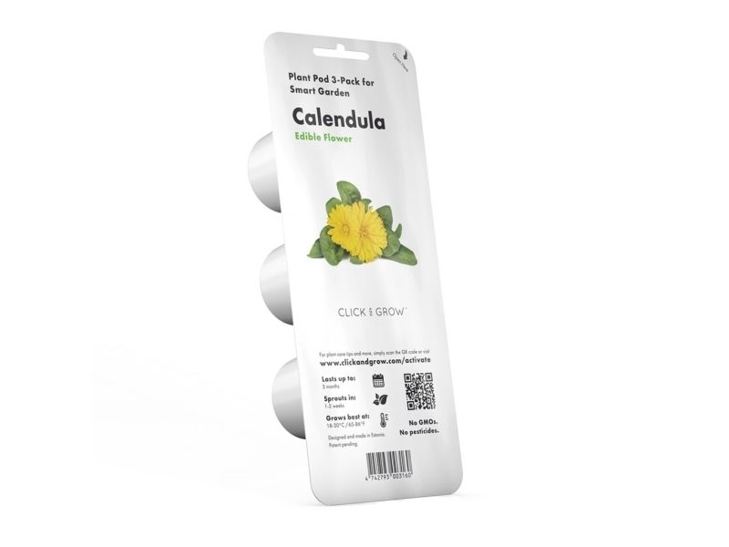 Discover Calendula's captivating beauty and healing properties with our Click & Grow Smart Garden Refill 3-pack. This splendid flower cherished since the 12th century not only adds a vibrant splash of colour to your indoor garden but is also prized for its beneficial effects. Grow your own Calendula effortlessly and savour the taste and therapeutic benefits of homegrown all-natural greens all year round.Hassle-free automated growing processPurity guaranteed?no GMOs herbicides or pesticidesNutrient-rich plant pods with included seedsAntioxidant-packed for health and wellnessGrow at home to bring you closer to natureHassle-free automated growing process Our Click & Grow Smart Garden empowers you to cultivate Calendula with ease. The smart indoor garden system manages watering lighting and nutrient distribution ensuring plants flourish without constant attention or a green thumb. With this refill pack maintaining a consistent supply of Calendula is as simple as inserting the pods and letting the Smart Garden do the rest. Purity guaranteed?no GMOs herbicides or pesticides Join the movement towards healthier sustainable living by choosing our Click & Grow products. Our Calendula plant pods are entirely free of GMOs herbicides and pesticides providing you with the purest flowers. Revel in the peace of mind of knowing your Calendula is grown in a clean controlled environment. Nutrient-rich plant pods with included seeds Each Smart Garden refill pod arrives pre-packaged with premium seeds and all the nutrients needed for the entire life cycle of your Calendula plant. There's no need for additional fertilizers; we've taken care of the details so you can enjoy your herbs' flourishing growth and rich flavours. Antioxidant-packed for health and wellness Calendula is renowned for its high antioxidant contents such as triterpenes flavonoids polyphenols and carotenoids. By growing your own you have direct access to these health-enhancing compounds. Whether added to salads or brewed as a calming tea Calendula from your Click & Grow garden is a natural boost for your well-being. Grow at home to bring you closer to nature Experience the joy of gardening in the comfort of your home any day of the year. Our Smart Garden Refill 3-pack encourages you to connect with nature and relish the satisfaction of cultivating your own vibrant Calendula. Whether gracing your kitchen or living room this delightful plant offers beauty and tranquillity. Package includes3 Click & Grow Calendula plant podsProduct specificationsBiological name: Calendula officinalisPlant type: Edible flowerGermination time: 7 - 14 daysLifecycle: Lasts up to 12 weeksOptimal growth temperature: 18°C ? 30°CLighting: One lamp arm is recommended for optimal growthHarvesting: Can begin flowering approximately 50 days after planting