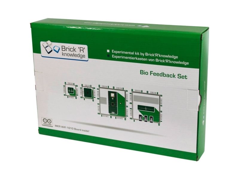 BIO Feedback-sæt: Fra hjerteslag til Mind Control! 1x Arduino MKR Brick adapter 1x Arduino MKR WiFi 1010 board 1x Bio Feedback Brick (EEG/EKG/EMG) 1x puls-oximeter Brick til pulsmåling & oxygenmætningen 1x OLED display Brick 1x Dual-LED Brick rød / grøn på masse 4x T-stykke Brick 1x masse Brick 3x duplex-kabel med hver 2 clips til EEG/EKG/EMG-pads 30x EEG/EKG/EMG pads 1x 9 V batteri 1x 9 V-batteriadapter BrickFra hjerteslag til Mind Control! Vil du gerne have en LED til at lyse med dine tanker? Det er nu muligt med det nye Bio Feedback-sæt! Foretag en EKG til måling af hjertefrekvens, test af din muskelaktivitet med EMG og viser dine hjernevasker med en EEG! Med den medfølgende puls