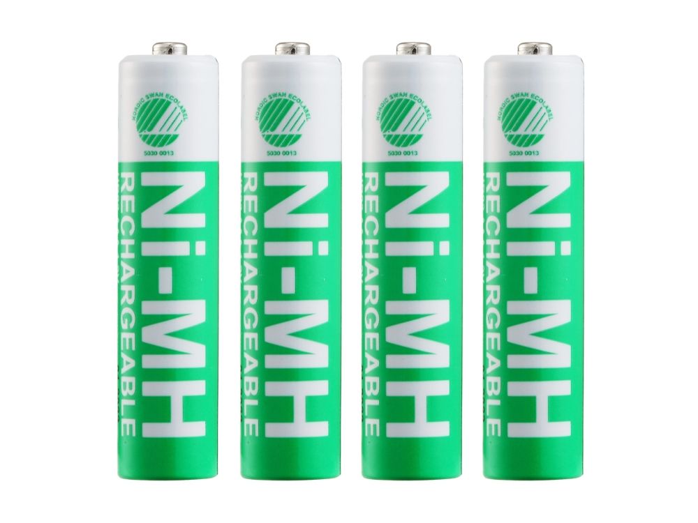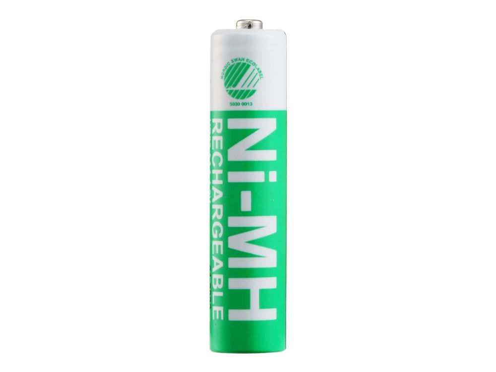 Nordic Swan Ecolabelled rechargeable AAA batteries (HR03) of the NiMH type. Long-lasting when used in your favorite appliances and toys. But also, long-lasting shelf life, always ready when you need them the most. Of course, our batteries are made with leakage protection. Can be charged with a NiMH battery charger. Will last up to 300 recharges.