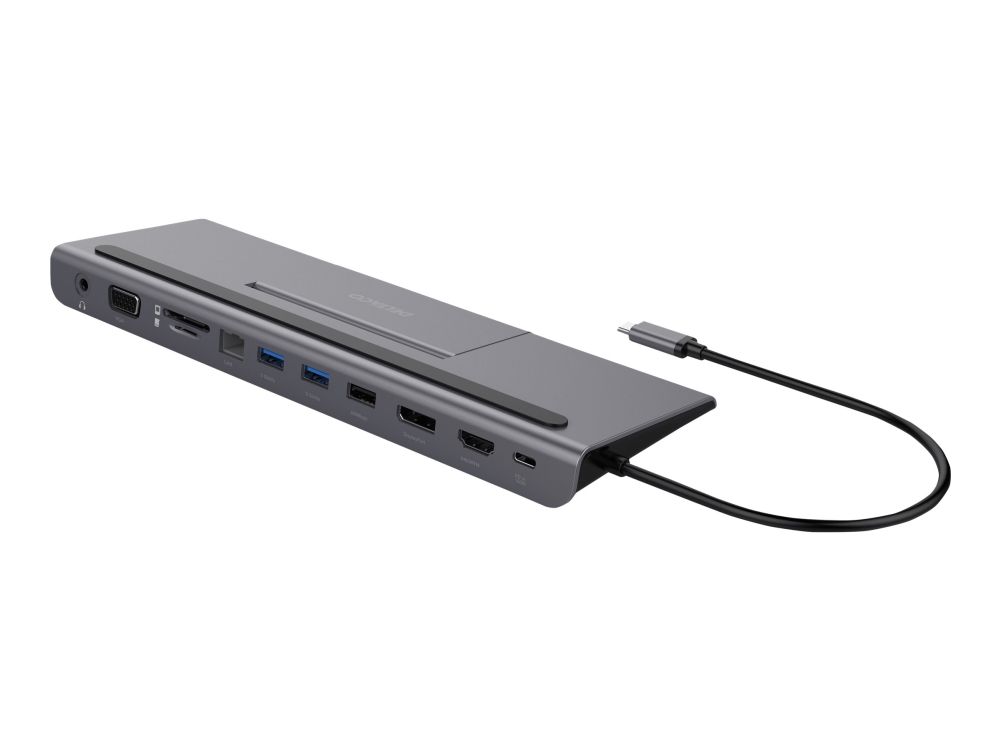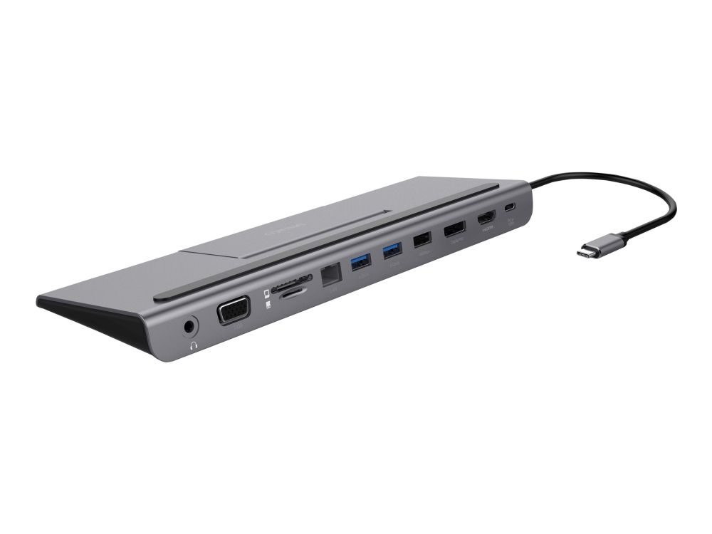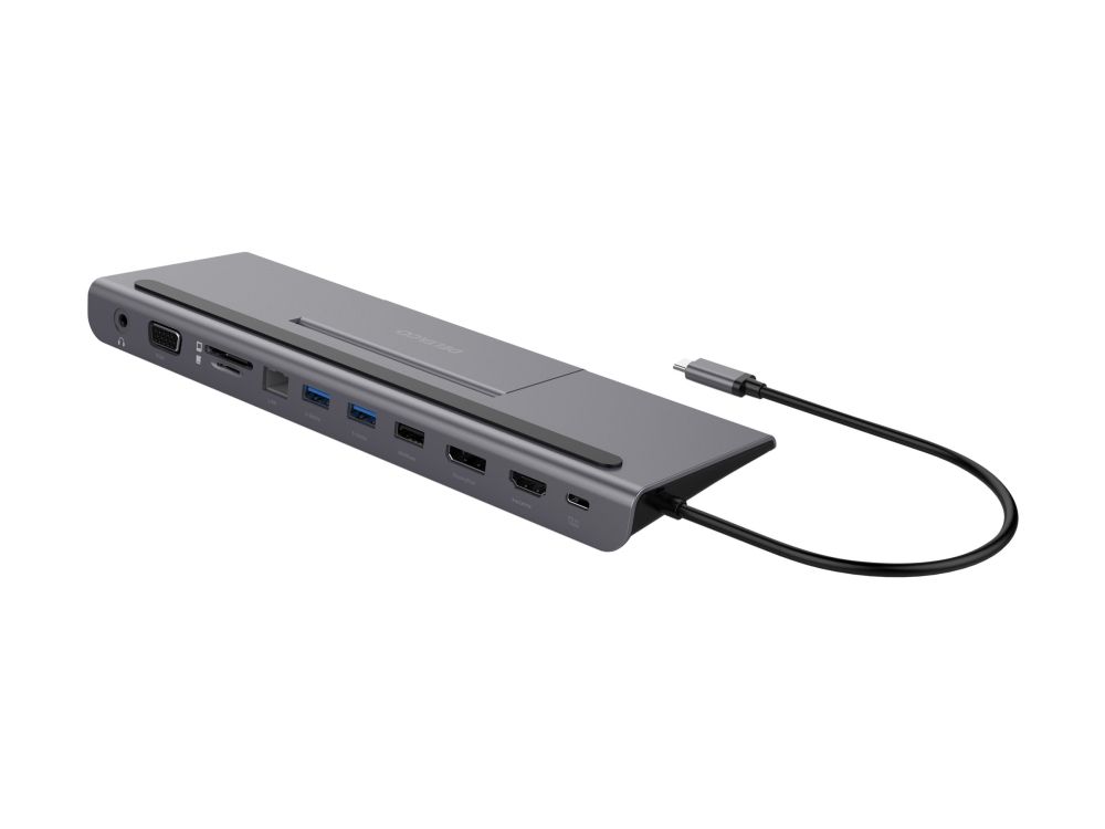 The dock is compatible with most computers, just connect to a free USB-C port on your computer to get access to 1x USB-C / 3x USB-A / SD & microSD reader / RJ45 / DisplayPort / HDMI / VGA / 3.5 mm (mic and headset)