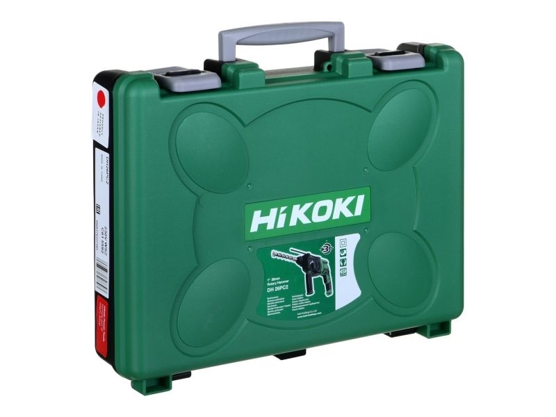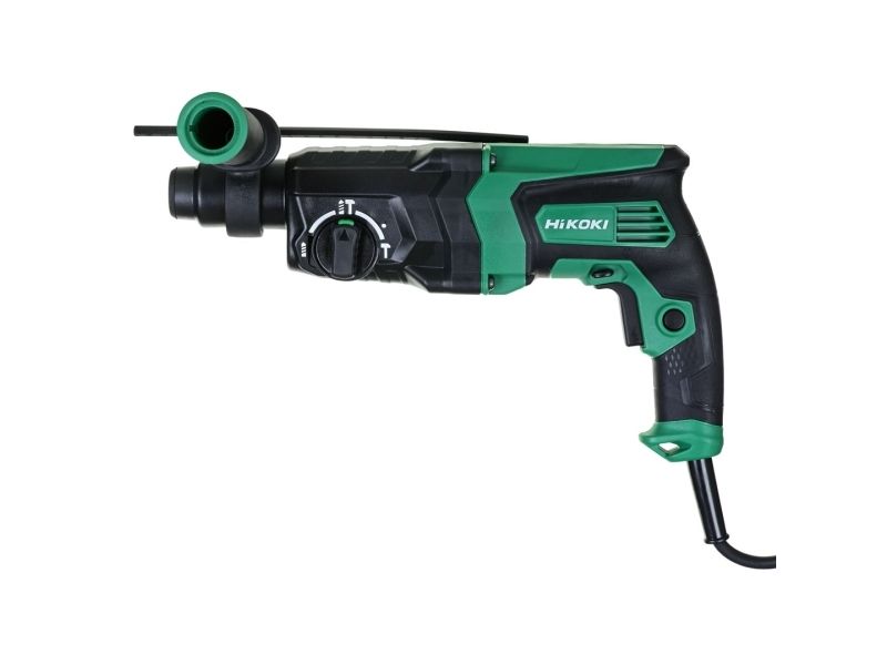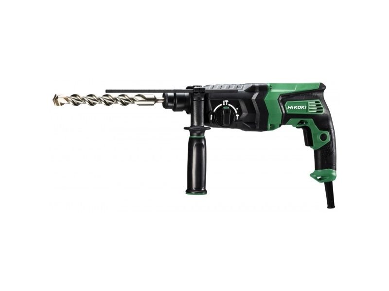 Hikoki DH26PC2. Chuck type: SDS Plus, Product colour: Black, Green. Drilling diameter in concrete (max): 2.6 cm, Rated speed (max): 1100 RPM, Impact energy (max): 2.9 J. Power source: AC, Input power: 830 W. Weight: 2.8 kg, Width: 349 mm, Depth: 75 mm