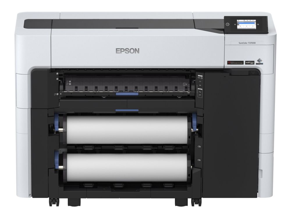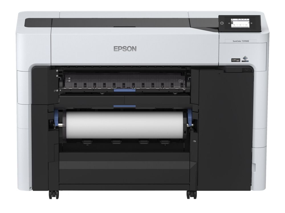 The SC-T3700DE combines high productivity with security to support day-to-day enterprise and commerical print shop needs. Thanks to its 6-colour UltraChrome XD3 all-pigment ink, including a new red ink, businesses can accurately replicate company logos and print vibrant images for posters and temporary outdoor advertising. Peace of mind is delivered by 28 security features and on-site warranty.Epson SureColor SC-T3700DE. Print technology: Inkjet, Maximum resolution: 2400 x 1200 DPI, Page description languages: ESC P, HP-GL/2, PDF 1.7. Maximum print size: A1 (594 x 841 mm), Paper tray media types: Roll, ISO A-series sizes (A0...A9): A1, A2, A3+, A4. Mobile printing technologies: Epson Cloud Solution PORT. Product colour: Black, White, Internal memory: 4096 MB. Power consumption (PowerSave): 32 W, Power consumption (standby): 0.3 W, Power consumption (typical): 75 W