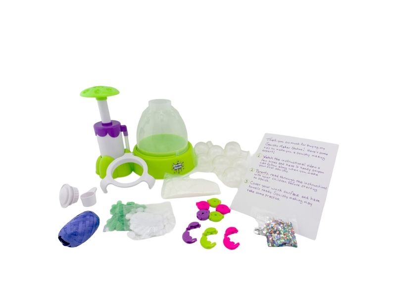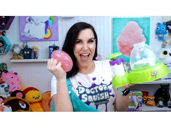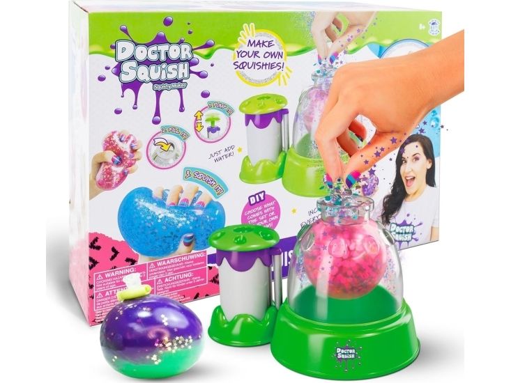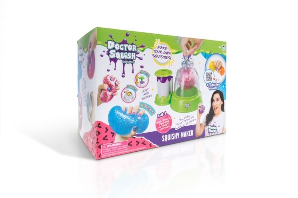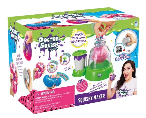 Dr. Squish liebt es, die besten Quetschspielzeuge zu finden und zu sehen, was in ihnen steckt! Sie liebt es, ihre eigenen Quetschkugeln und alles, was sich quetschen lässt, herzustellen. Mit der Squishy-Maschine kannst du jetzt deine eigenen Squishies in 3 verschiedenen Größen herstellen. Füge einfach Dekoration und Schleimpulver hinzu und fülle sie dann mit Wasser auf. Du kannst das verwenden, was im Lieferumfang der Maschine enthalten ist, aber auch deine eigene Dekoration. Ab 8 Jahren. Enthält: - Squishy Maker-Maschine - 1 Löffel und Schleimpulver - 2 farbige Latexballons - 4 durchsichtige Ballons - Glitter und Konfetti - 3 wiederverwendbare Clips - 1 Band - 2 Farbflaschen
