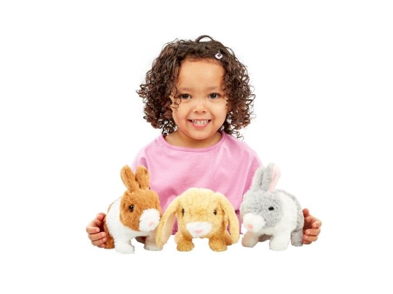 Die Kaninchen lieben es, im Haus herumzuspringen, mit den Ohren zu wackeln und die Nasen zu rümpfen! Sie sind so niedlich und sorgen für stundenlange Unterhaltung. Wenn es Zeit zum Schlafengehen ist, kann man das Tuch als kuscheliges Zuhause des Kaninchens verwenden, in dem es nach einem aufregenden Tag einschlafen kann. Benötigt 2 x AA-Batterien (nicht enthalten). 3 verschiedene. Ab 3 Jahren.