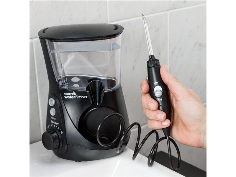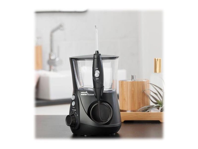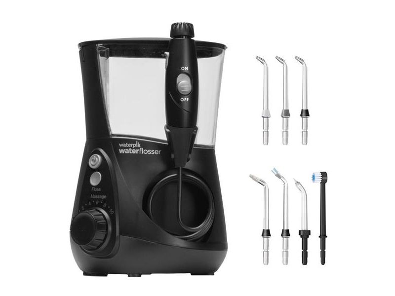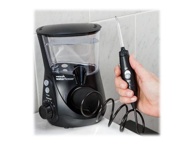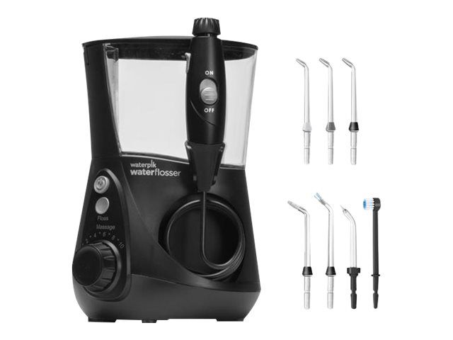Product Benefits Clinically proven up to 50% more effective than traditional dental floss for reversing gingivitis and improving gum health. Proven in laboratory tests to remove up to 99.9% of plaque from treated areas with a 3-second application. Clinically proven up to 3X as effective as dental floss for cleaning around braces with the Orthodontic Tip. Removes bacteria deep between teeth and below gumline where brushing and traditional flossing can't reach. Massages and stimulates gums to improve circulation and keep your gums strong and healthy. Great for people with implants, crowns, bridges, and veneers. Leaves your mouth feeling incredibly fresh and clean. Ideal for those who have difficulty using dental floss, toothpicks, or interdental brushes.Waterpik Aquarius WP-662E. Power source: AC, AC input voltage: 100 - 240 V