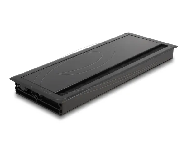 This cable grommet by Delock with brush and hinged cover is ideal for table mounting to pass cables through. The nylon brush prevents dust and dirt from getting in and ensures a safe cable passage.