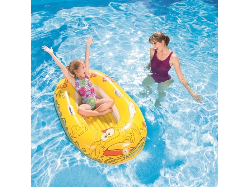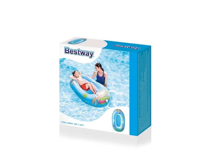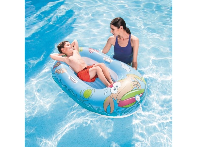 • Konstruktion: · Größe aufgeblasen: 110 x 64 x 25 cm · Größe unaufgeblasen: 119 x 79 cm · Maximale Belastbarkeit: 45 kg · Aus strapazierfähigem PVC • Ab 3 Jahren • Buntes Meerestier-Design • Ausstattung: · Aufblasbarer Boden für extra Komfort · Robuste Haltegriffe · Sicherheitsventile • Inklusive Reparaturflicken • Farbkarton