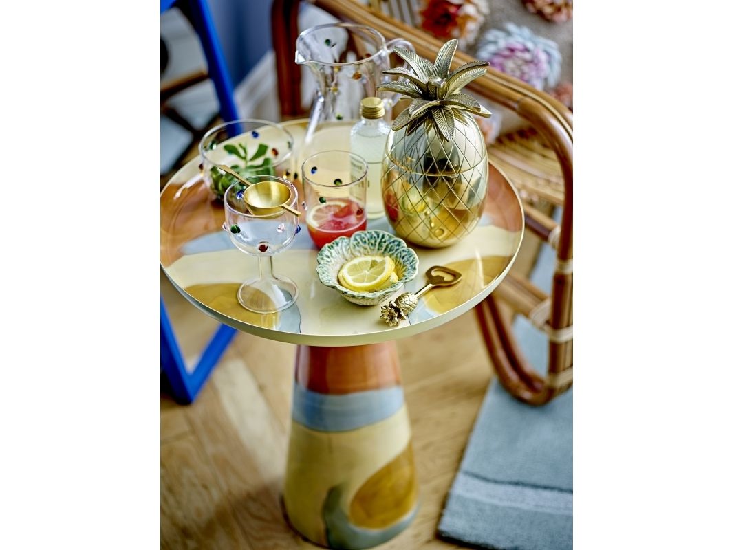 Der Yuichi Eiskübel von Bloomingville ist aus Aluminium gefertigt und in Form einer Ananas mit einer schönen goldenen Oberfläche gestaltet. Die strukturierte Oberfläche und das detaillierte Design machen den Eiskübel sowohl praktisch als auch dekorativ. Er ist ideal, um Eiswürfel bei festlichen Anlässen kühl zu halten oder als hübsches Element auf dem Esstisch.