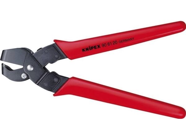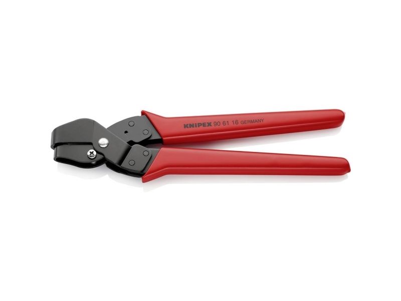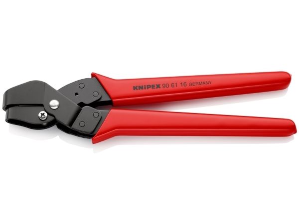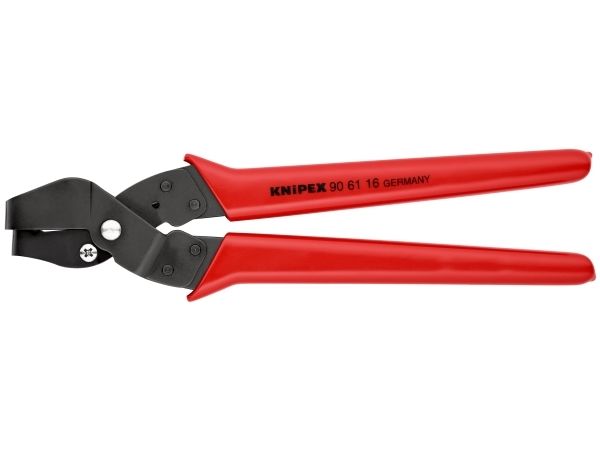 90 61 16 Ausklinkzange Spezialzange zum Ausschneiden von Ausschnitten in Kunststoff-Formteilen und -Gehäusen in der Elektro- und Sanitärinstallation. Die Ausschnitte können durch Vor- und Nachschneiden vergrößert werden. Saubere Schnittkanten, keine Nachbearbeitung des geschnittenen Profils. Einfache Handhabung. Mit Öffnungsfeder, Öffnungsbegrenzer und Sperrklinke