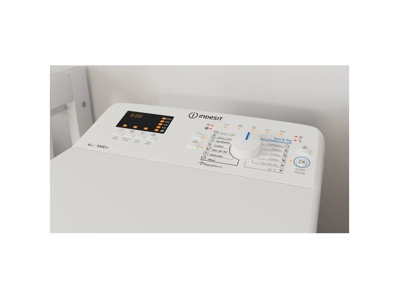 Indesit BTW S60400 EU/N. Loading type: Top-load. Rated capacity: 6 kg, Spin-drying class: C, Noise level (spin): 78 dB, Maximum spin speed: 1000 RPM. Product colour: White. Width: 400 mm, Depth: 600 mm, Height: 900 mm. Energy efficiency class: C