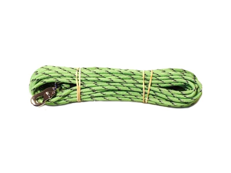 Geflochtene Sportleine mit Karabiner. Perfekt für den Einsatz im Training, auf der Rennstrecke und bei Kälteübungen aller Art. Aus kreuzweise geflochtenem Polyester, das besonders haltbar ist. Die Linie hat auch einen verflochtenen Reflektor.