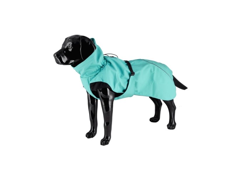 Der Bezug besteht aus einem wasserdichten (8000 mm) PU-Gewebe und einem leichten Netzfutter. Schützt vor Regen und Wind. Reflektierende Details, verstellbarer Halsausschnitt, Kragen und Kordel und eine Gurtöffnung auf dem Rücken.