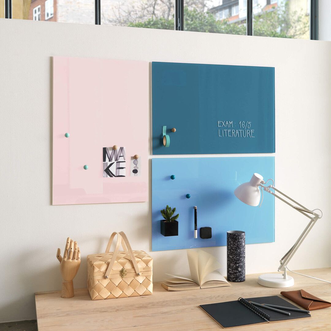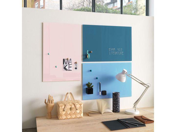 Magnetische Glastafeln von NAGA haben die gleichen Funktionen wie Whiteboards und Pinnwände. Das Glas verleiht einen eleganten Ausdruck und ist gleichzeitig ein praktischer Wandschmuck. Glastafeln gibt es in vielen Farben, Formen und Größen. Man kann sie mit Kreidemarkern oder normalen Whiteboard-Markern beschriften und Dinge mit Magneten befestigen. Für Glastafeln benötigen Sie besonders starke Magnete, die auch als Neodym-Magnete bezeichnet werden. Die Montage von Glastafeln ist einfach. Die kleinen Tafeln brauchen nur 1 oder 2 Schrauben direkt in die Wand, die größeren Glastafeln werden an einer Schiene aufgehängt, die ebenfalls nur direkt in die Wand geschraubt wird. Schrauben und Dübel sind im Lieferumfang enthalten.