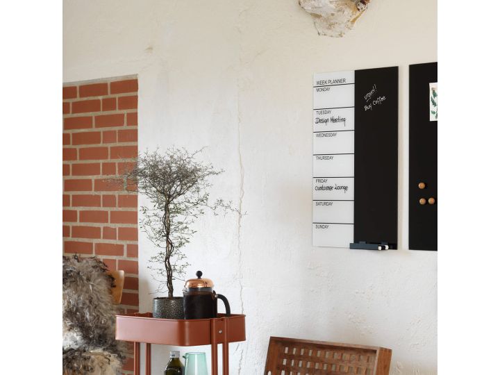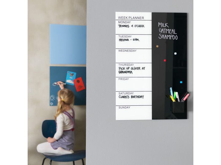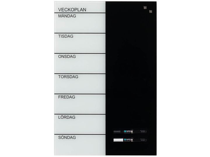 Magnetisk glas veckstavla 40x60 cm. Skriv på tavlan med en markör och fäst saker på den med superstarka magneter. Gör det enkelt att planera veckans aktiviteter och använd den andra hälften av numret för anteckningar eller påminnelser.