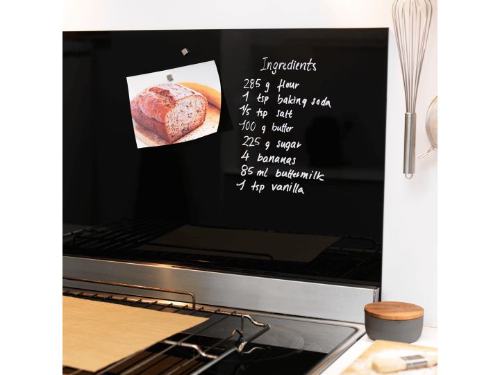 Eine NAGA-Spritzwand ist ebenfalls eine magnetische Glastafel. Sie können mit Glasmarkern direkt auf das Glas schreiben und Dinge mit superstarken Magneten aufhängen. Naga-Spritzwände sind in zwei Größen - 60x50 cm und 100x50 cm - und in den Farben schwarz, beige marmoriert, schwarz marmoriert und reinweiß erhältlich. Die Naga-Spritzwände werden mit selbstklebendem Klebeband auf der Rückseite geliefert. Bei unebenen Oberflächen empfehlen wir die Verwendung von Montagekleber oder Spiegelsilikon, das in schmalen, vertikalen Streifen aufgetragen wird.