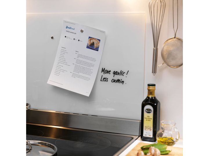 Eine NAGA-Spritzwand ist ebenfalls eine magnetische Glastafel. Sie können mit Glasmarkern direkt auf das Glas schreiben und Dinge mit superstarken Magneten aufhängen. Naga-Spritzwände sind in zwei Größen - 60x50 cm und 100x50 cm - und in den Farben schwarz, beige marmoriert, schwarz marmoriert und reinweiß erhältlich. Die Naga-Spritzwände werden mit selbstklebendem Klebeband auf der Rückseite geliefert. Bei unebenen Oberflächen empfehlen wir die Verwendung von Montagekleber oder Spiegelsilikon, das in schmalen, vertikalen Streifen aufgetragen wird.