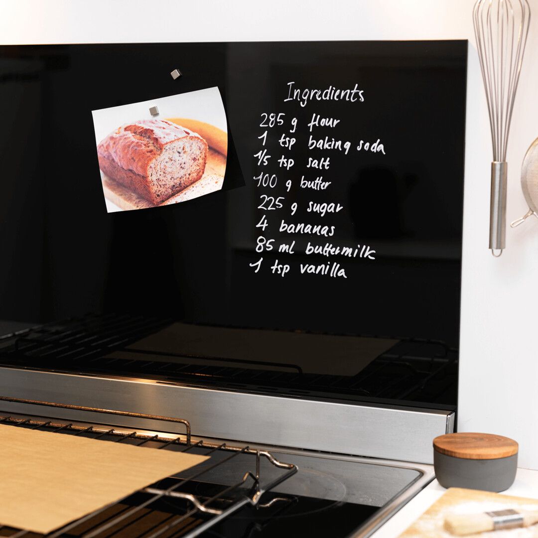 Eine NAGA-Spritzwand ist ebenfalls eine magnetische Glastafel. Sie können mit Glasmarkern direkt auf das Glas schreiben und Dinge mit superstarken Magneten aufhängen. Naga-Spritzwände sind in zwei Größen - 60x50 cm und 100x50 cm - und in den Farben schwarz, beige marmoriert, schwarz marmoriert und reinweiß erhältlich. Die Naga-Spritzwände werden mit selbstklebendem Klebeband auf der Rückseite geliefert. Bei unebenen Oberflächen empfehlen wir die Verwendung von Montagekleber oder Spiegelsilikon, das in schmalen, vertikalen Streifen aufgetragen wird.