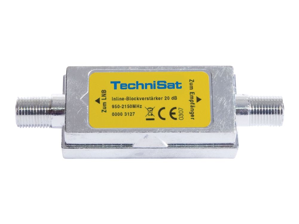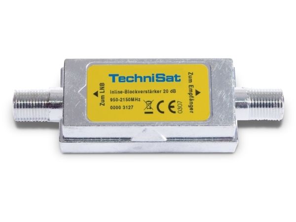 TechniSat Inline Block Amplifier are used to amplify the 1. Intermediate Frequency (950-2150 MHz). The level of amplification is 20 dB. Operating current is supplied to theInline Block Amplifier via the coaxial cable.