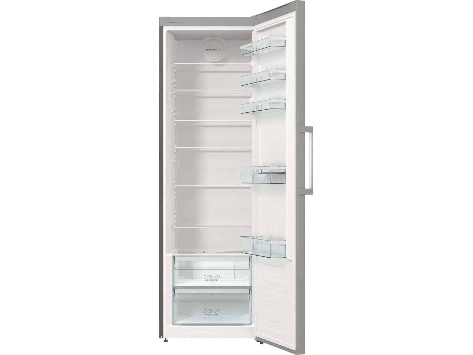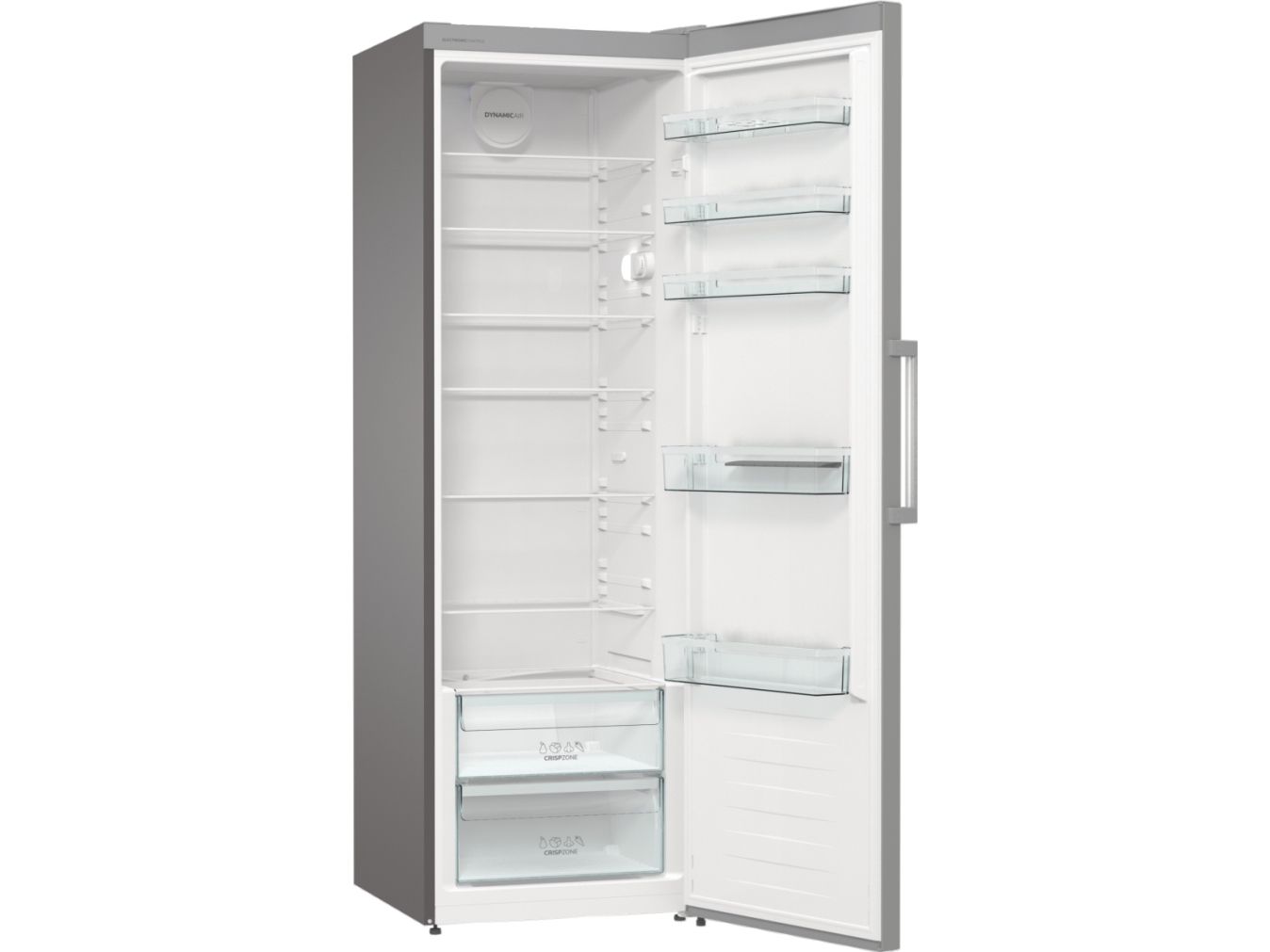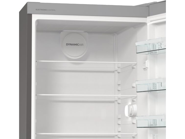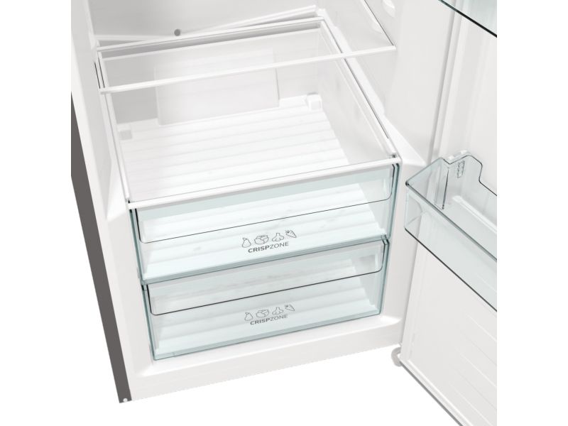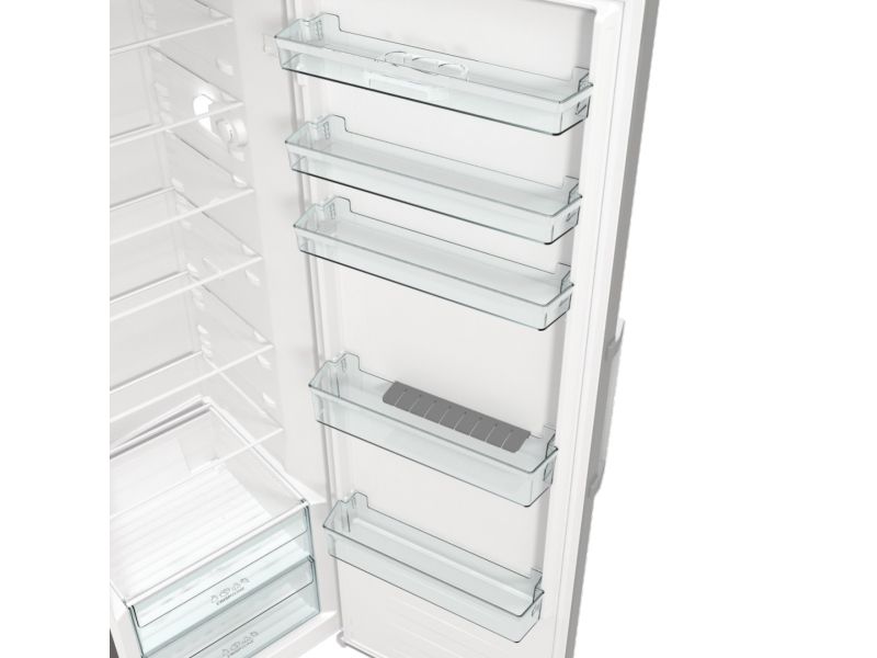 Discover the Gorenje Essential R619EES5 refrigerator, designed to meet the needs of modern households. This refrigerator has a total net capacity of 398 liters, suitable for storing a wide variety of food items. It features dynamic cooling technology to maintain an even temperature throughout, keeping your groceries fresh. The electronic control system allows for precise temperature adjustments, while the efficient design, with an annual consumption of only 123 kWh, helps reduce your carbon footprint and save on utility bills. The interior includes glass shelves, door compartments, and drawers, such as a CrispZone with humidity control for fruits and vegetables. LED lighting illuminates the interior, making it easy to find what you need. Additionally, the refrigerator has reversible doors and adjustable feet with wheels, offering flexibility in placement and installation. Embrace the convenience and efficiency of the Gorenje Essential R619EES5, a refrigerator that caters to your lifestyle.