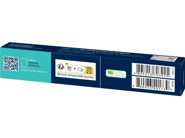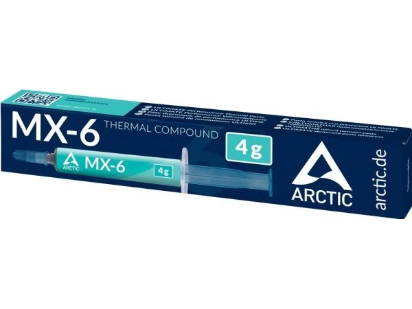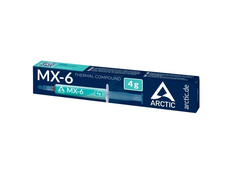 ARCTIC MX-6 is a thermal paste designed to provide efficient heat transfer between the CPU and heatsink. With a wide operating temperature range of -50°C to 150°C, it ensures reliable performance under extreme conditions. This thermal paste is suitable for various applications, making it a choice for gamers, overclockers, and anyone looking to enhance their system's cooling efficiency.