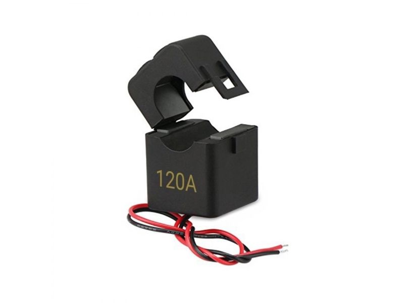This split core current transformer allows to measure current up to 120A. Voltage measurement is performed by the Shelly EM module.