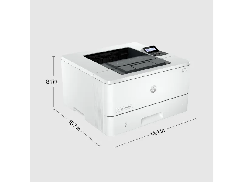 Dynamic security enabled printer Certain HP printers are intended to work only with cartridges that have a new or reused HP chip or electronic circuitry. These printers use dynamic security measures to block cartridges using a non-HP chip or electronic circuitry. Periodic firmware updates will maintain the effectiveness of these measures and block cartridges that previously worked. Reused HP chips and electronic circuitry enable the use of reused, remanufactured, and refilled cartridges.HP LaserJet Pro 4002dw Printer. Print technology: Laser. Number of print cartridges: 1, Maximum duty cycle: 80000 pages per month. Maximum resolution: 1200 x 1200 DPI. Maximum ISO A-series paper size: A4. Print speed (black, normal quality, A4/US Letter): 40 ppm, Duplex printing. Display: LCD. Wi-Fi. Product colour: White