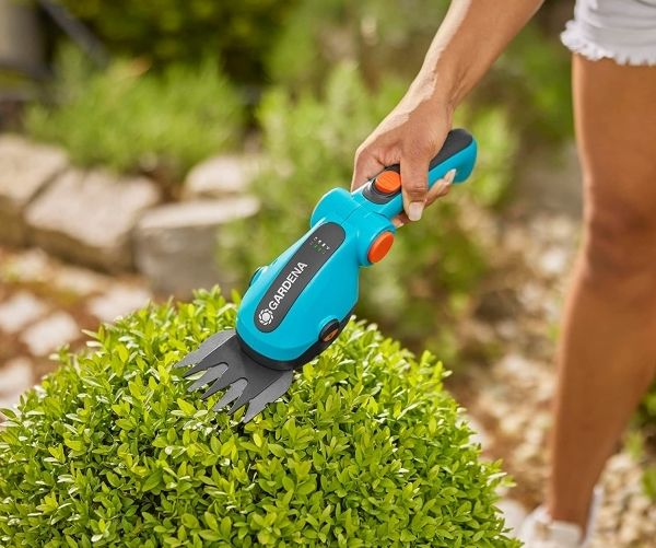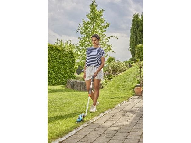The Battery Grass Shears ComfortCut Li Set from Gardena offers you all the options for comfortably cutting lawn edges and creating a beautifully-shaped cut for small shrubs such as boxwood. The blade of the grass cutter is precision-ground and non-stick coated for long-lasting sharpness and a precise and clean result. The grass shears are characterized by their slim design. The ergonomic handle makes it particularly comfortable to use. You can simply adjust the angle of the handle at the touch of a button. This ensures an optimal hand position during cutting. The telescopic handle with ergonomic grip is adjustable in height so that you can adapt it to your body size and thus assume a comfortable and upright position without bending. Thanks to the LED display, you can see the charging status of the battery grass shears.