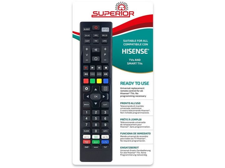 Superior RC/UNI-TV HISENSE. Brand compatibility: Hisense, Remote control proper use: TV, Interface: IR Wireless, Input type: Press buttons